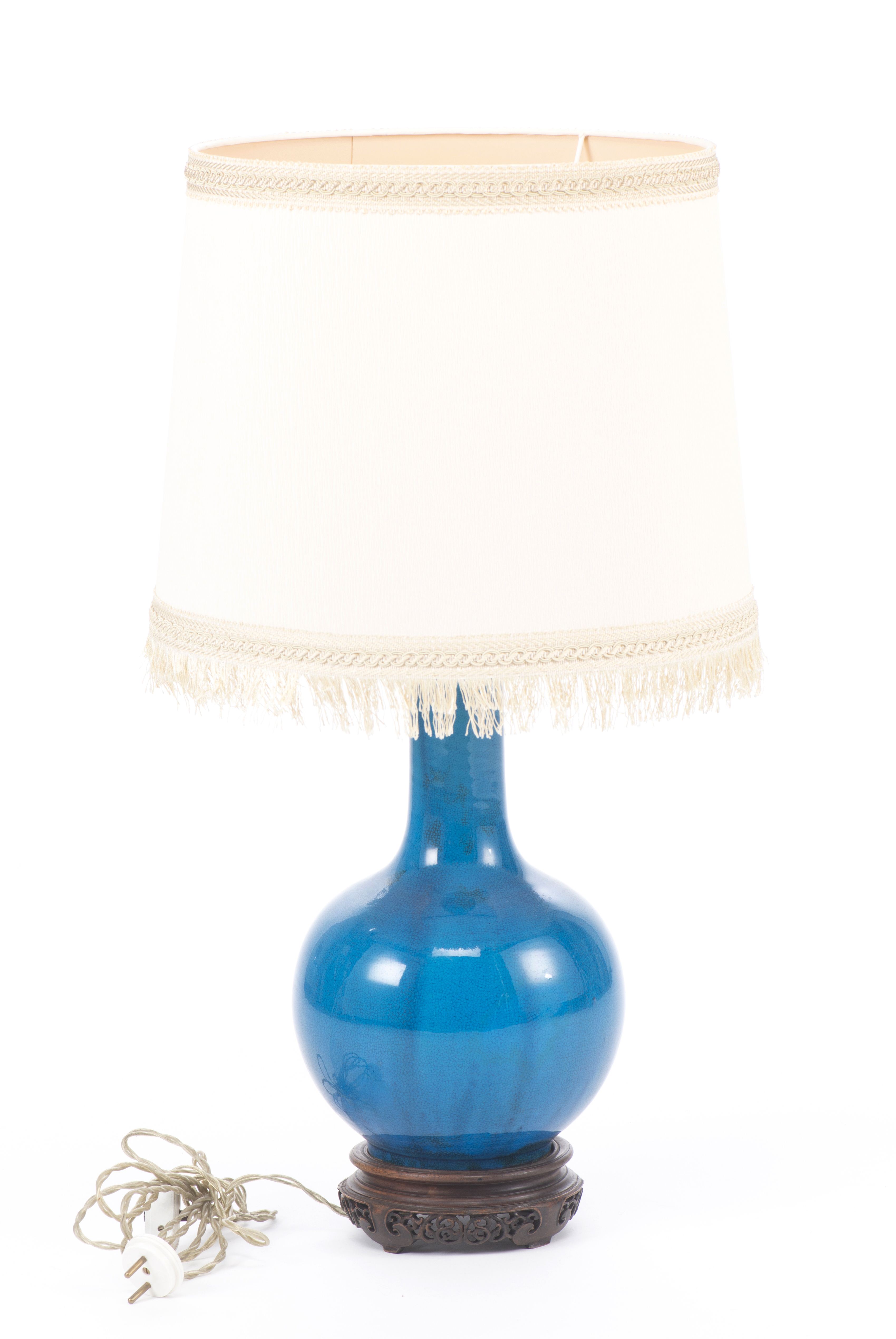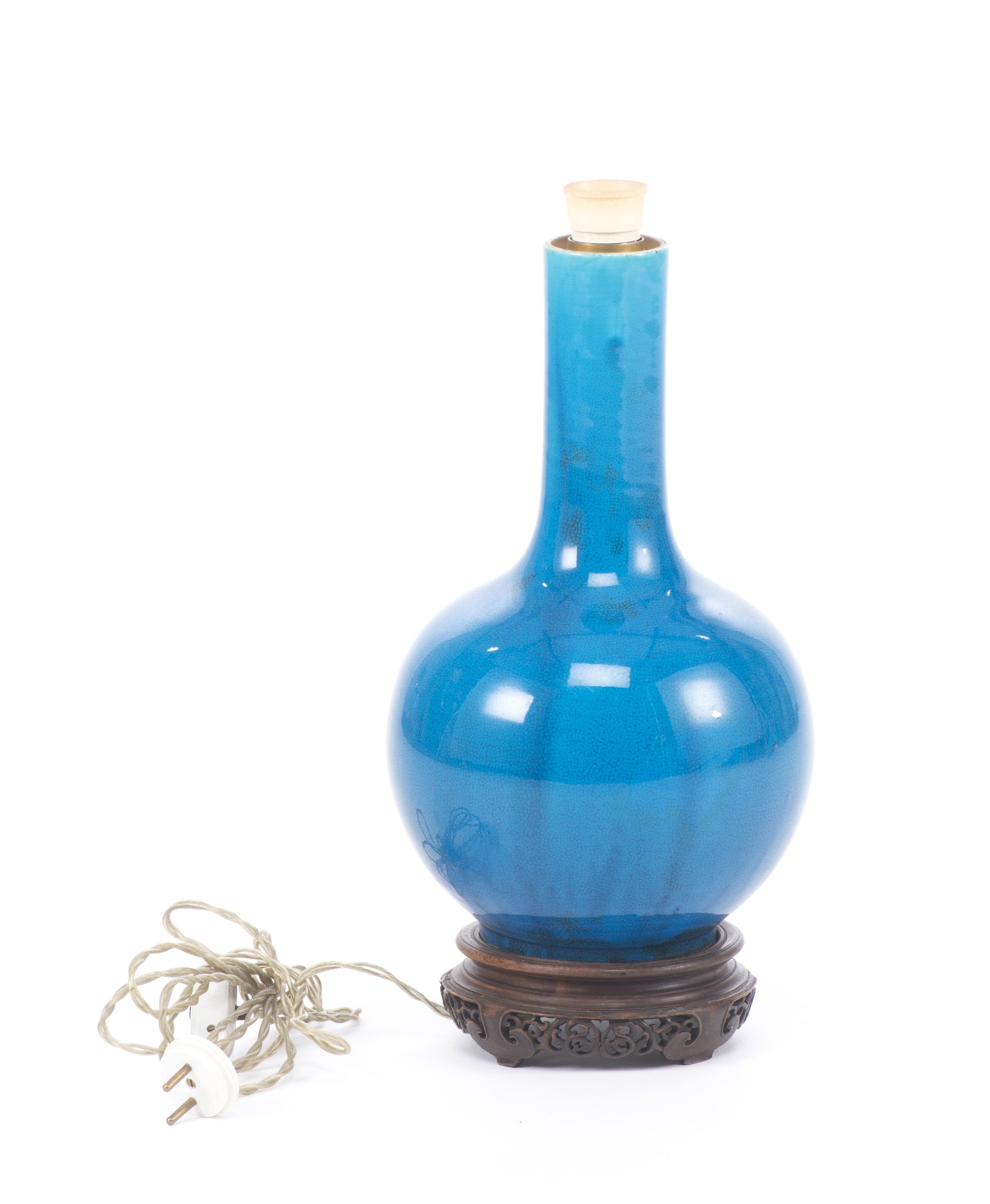 Vase boule en porcelaine de Chine monochrome turquoise, monté en lampe.