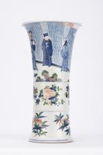 Vase de Chine de forme Gu en porcelaine à décor en Wucai