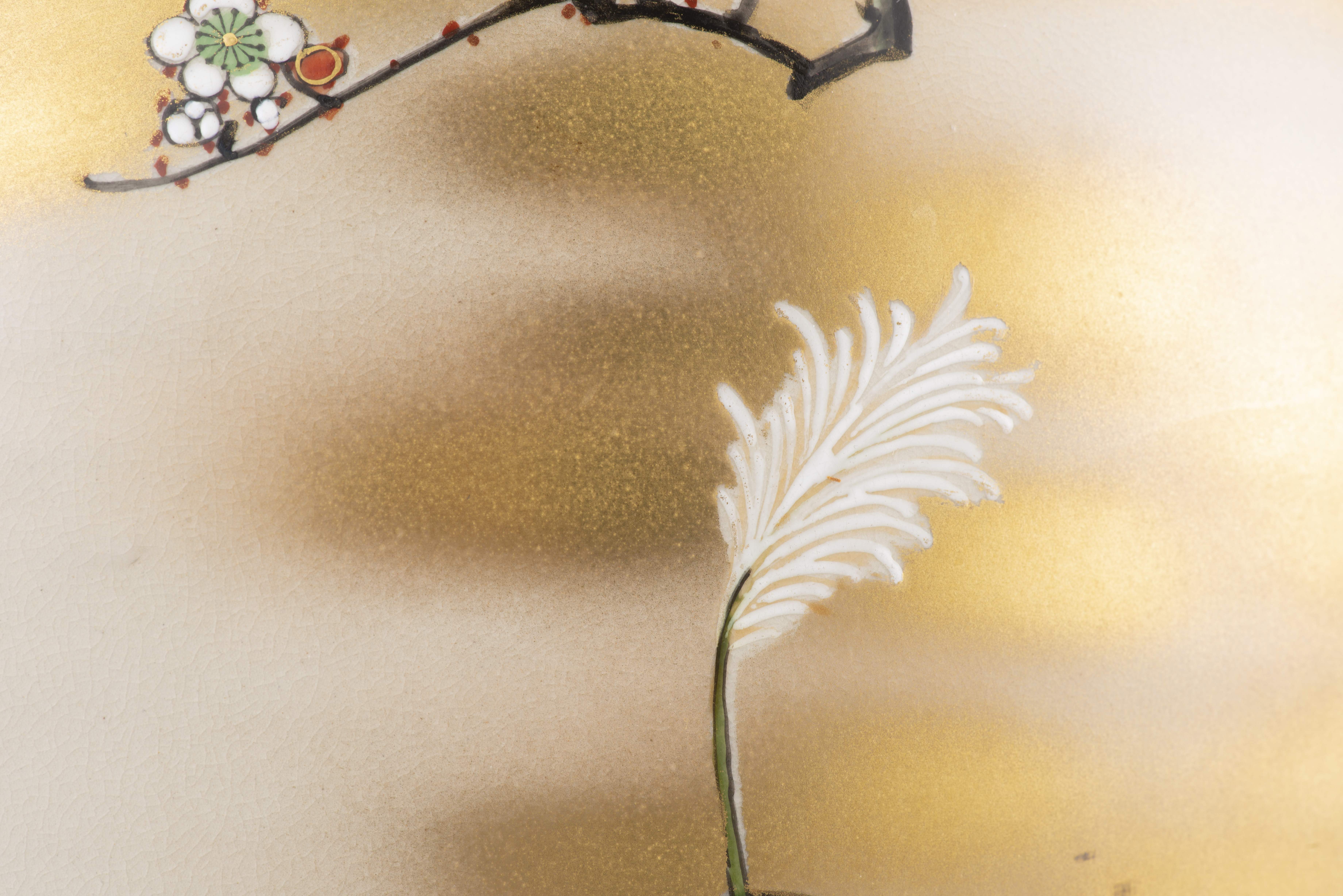 Vase en faïence Satsuma, Japon, décor de fleurs et oiseau, époque Taisho-showa. Marque à 4 caractères sous la base dans un cachet rouge inscrit Sozan.