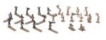 Vingt-quatre statuettes miniatures en bronze de Sierra-Leone représentant des personnages dans leur quotidien.