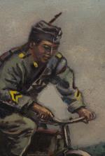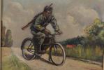 Walter MAFLI(1915-2017), "Le cycliste d'infanterie", huile sur panneau,signé et daté en bas à droite : Mafli. 49.