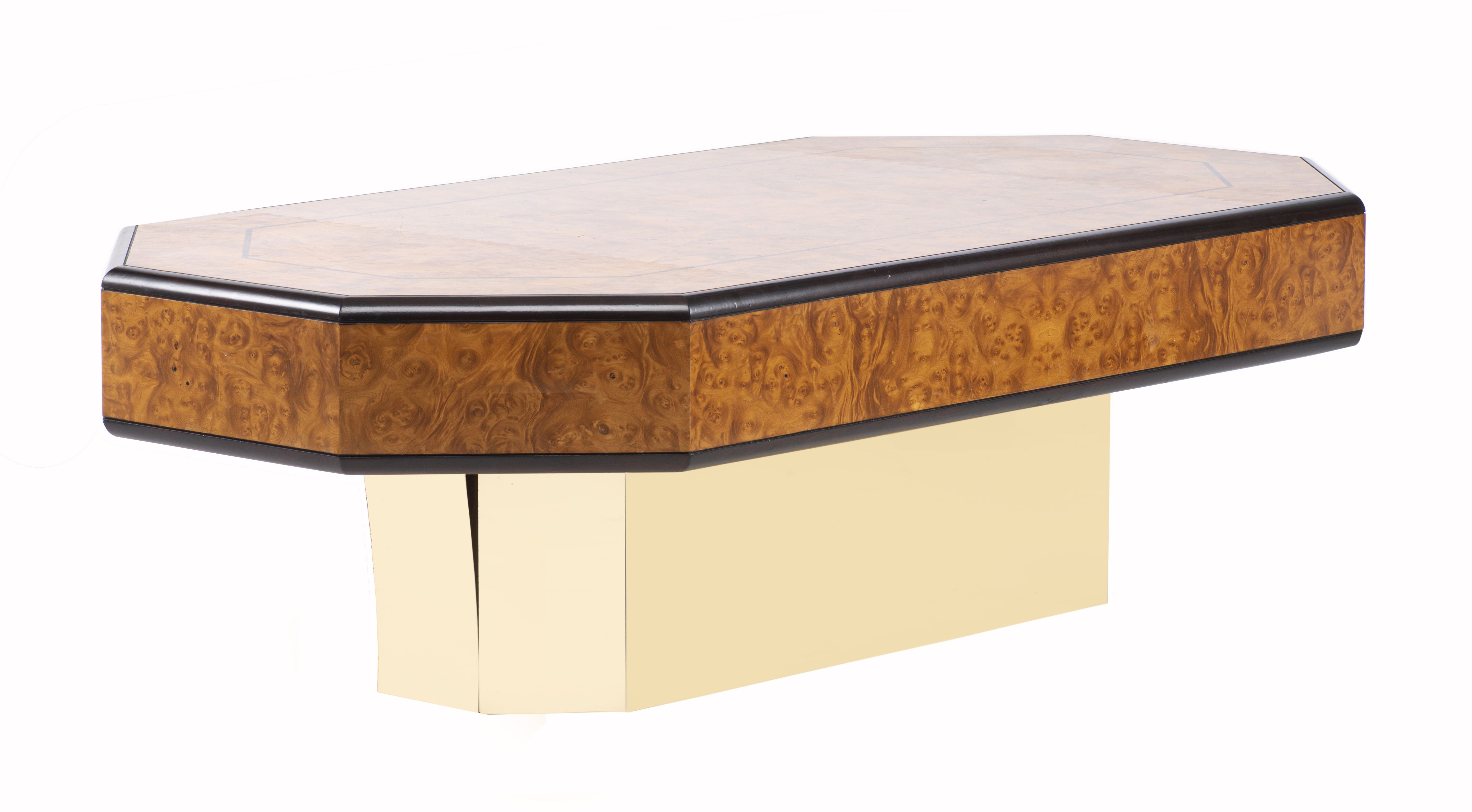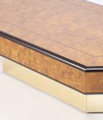 Willy RIZZO (1928-2013), table basse, placage de loupe de thuyas et laiton doré