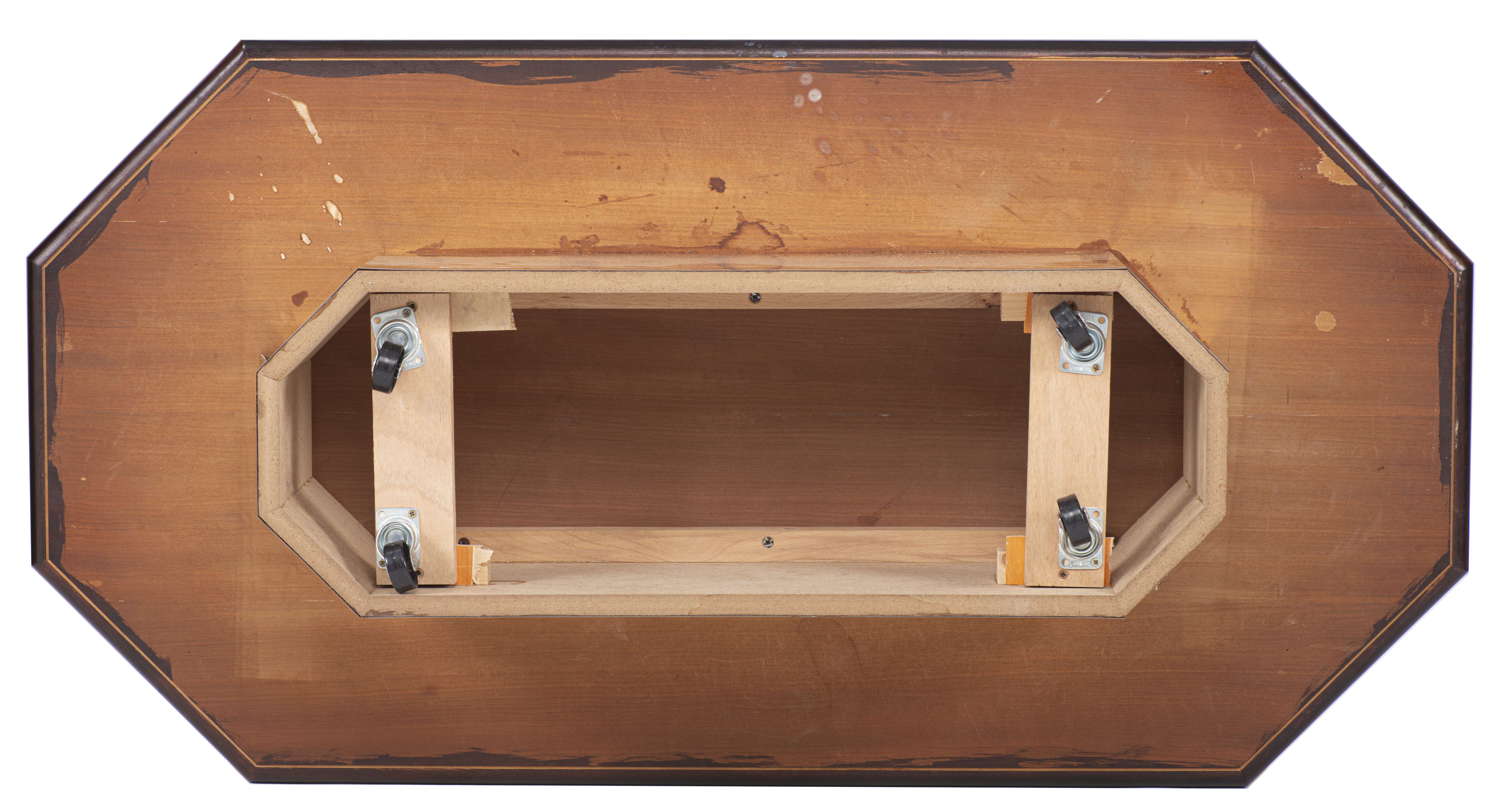 placage en laiton partiellement décollé sur le pied.