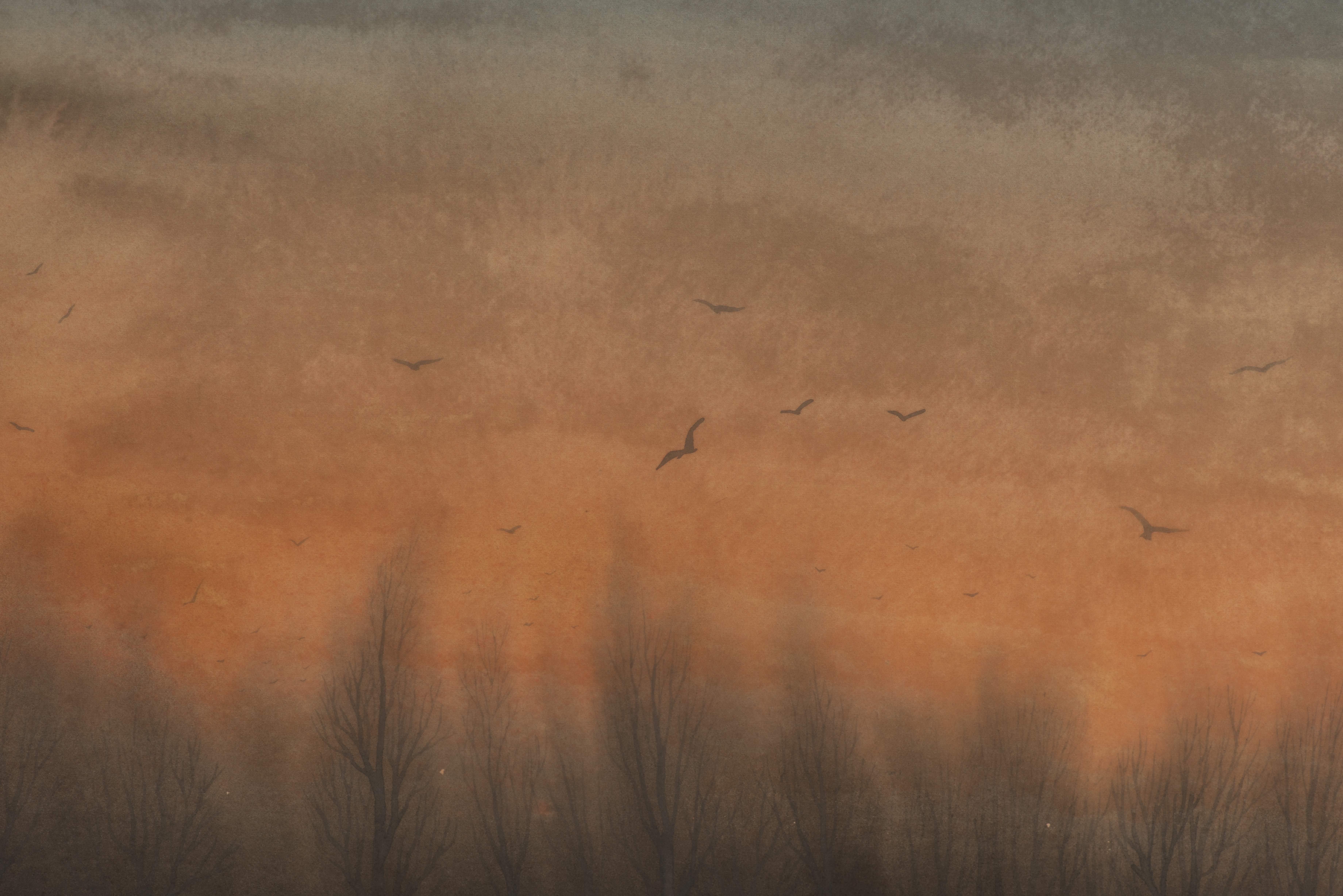 Xavier DEGANS (né en 1949), "Paysage au couchant", pastel et gouache sur papier, shd.