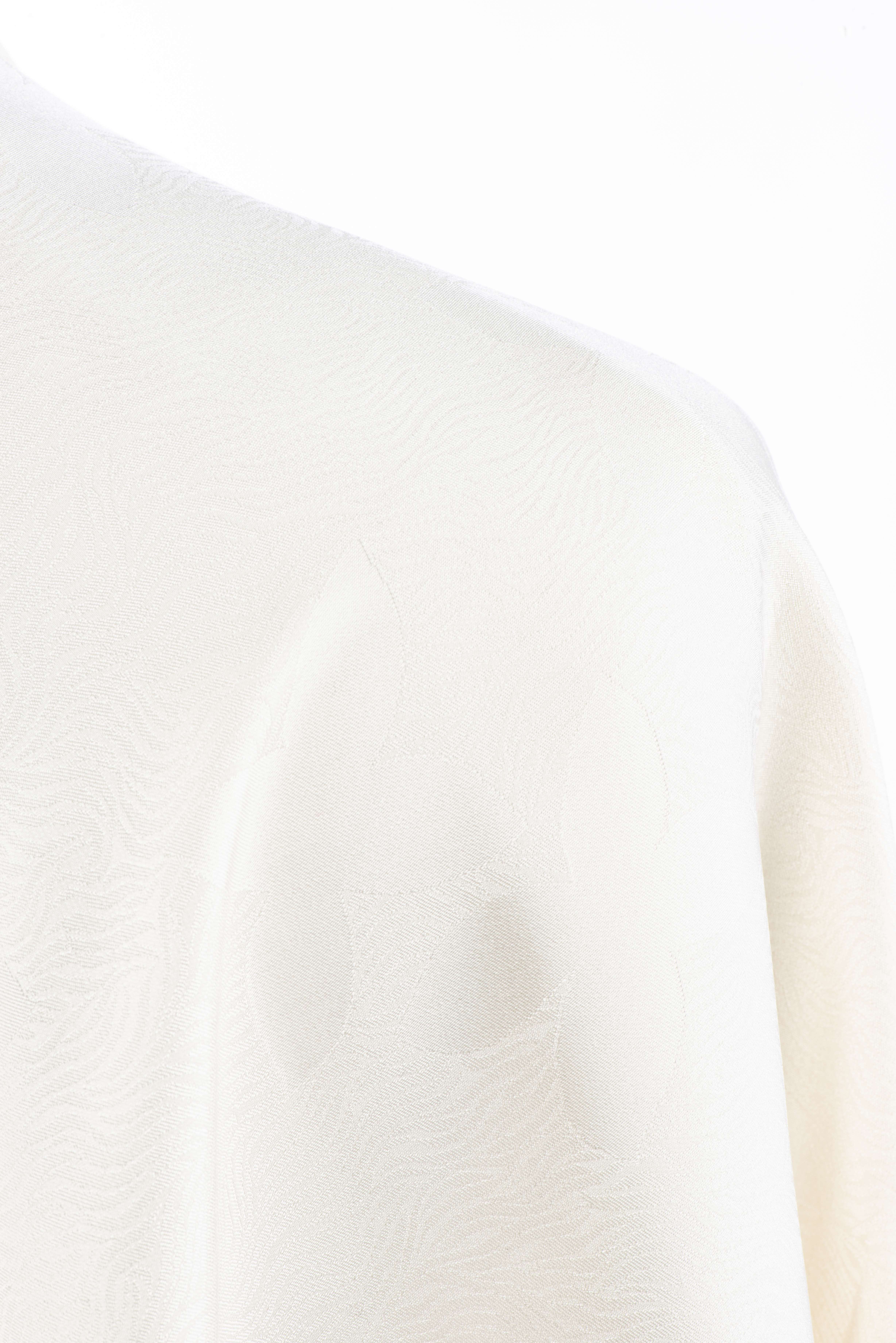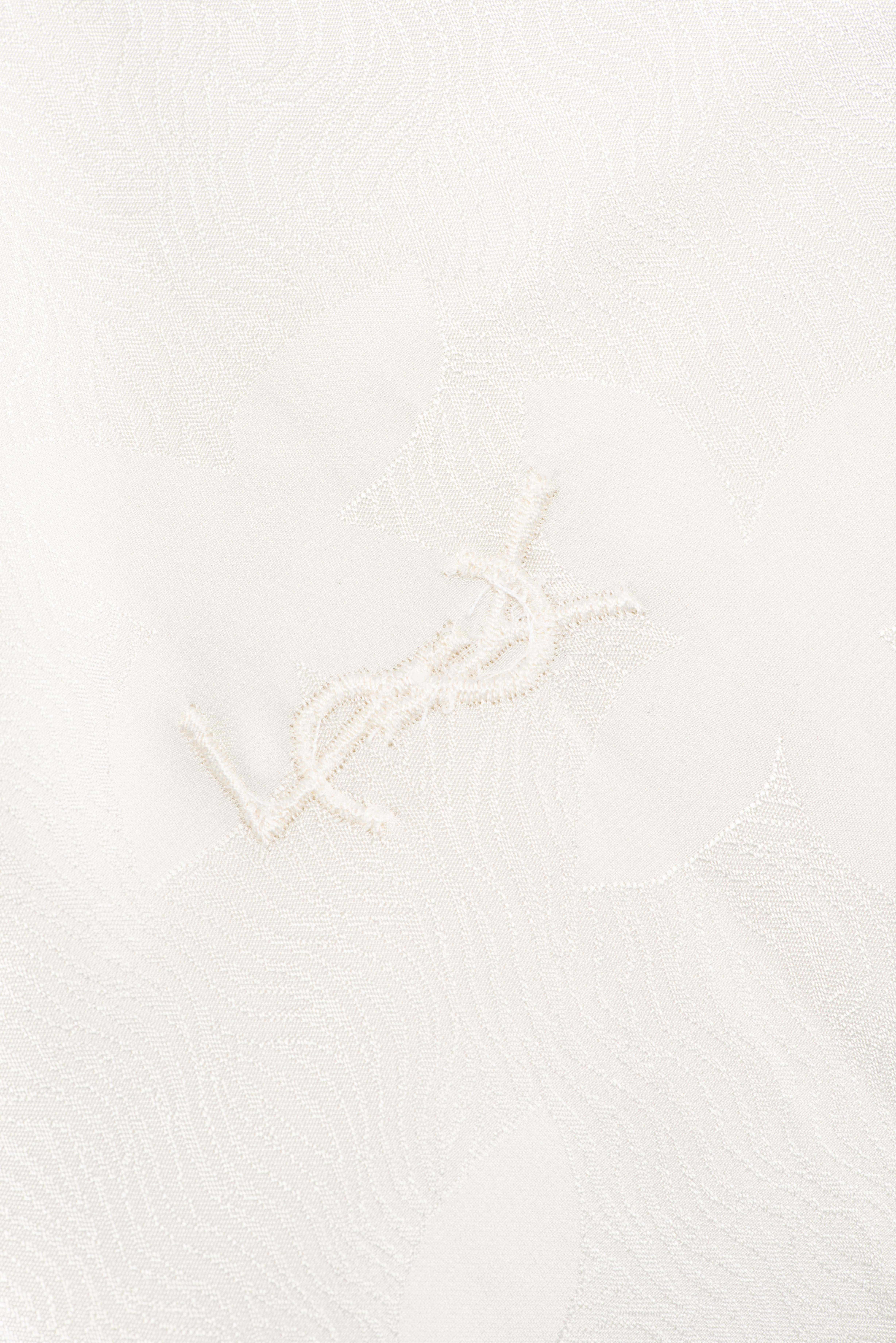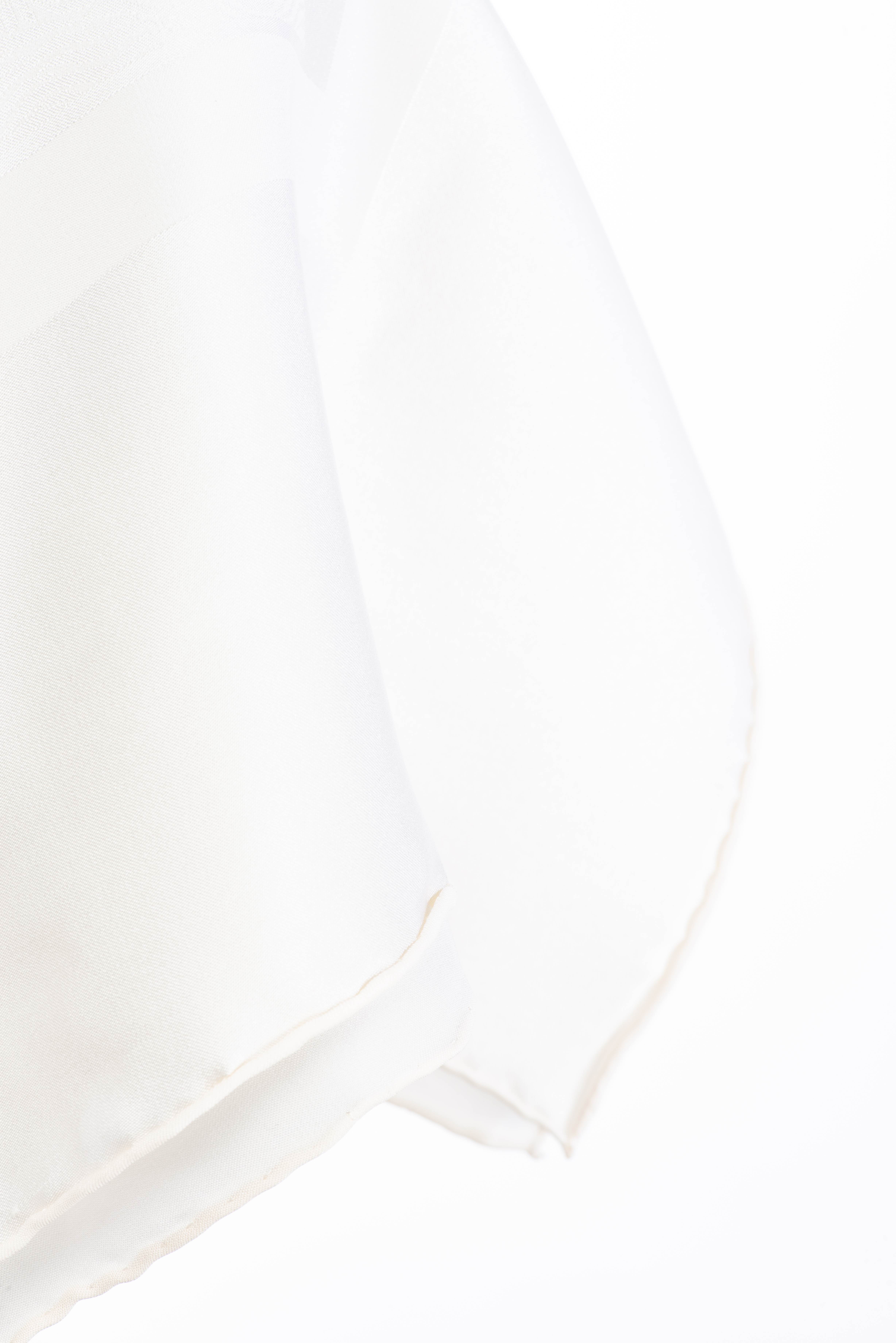 Yves SAINT LAURENT, grand carré en soie blanc crème avec fond fleuri.