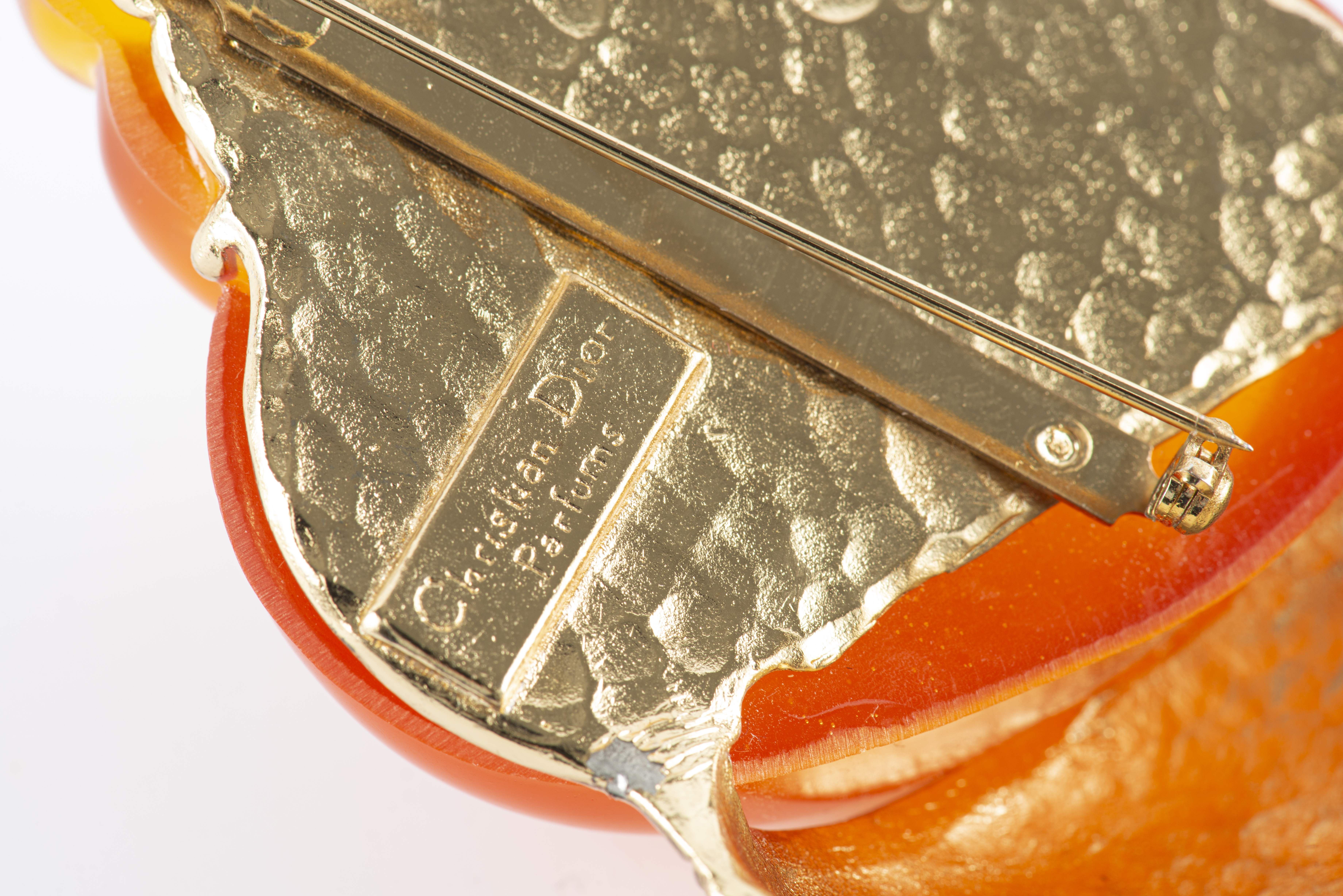 Yves SAINT LAURENT, grande broche "coquillage" en métal doré et résine, signé.