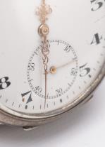 ZENITH montre de poche, mouvement doré Zénith cal. 20.5'''NVI 15 Jewels (43.9mm), osc. 18 000 A/h, réserve de marche 32h, mvt signé Zenith n° 2226023. Boîte n° 3048545 / 2795, en argent .800 Zenith. Cadran blanc avec petite aiguille des secondes à 6h, chiffres arabes noirs du fuseau horaire 1 à 12, aiguilles or. Inscription en noir du nom ZENITH.