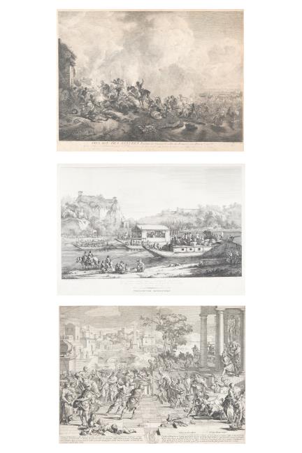 Ensemble de trois gravures à la pointe sèche de Moyreau, J.J. B. et N. Loyr