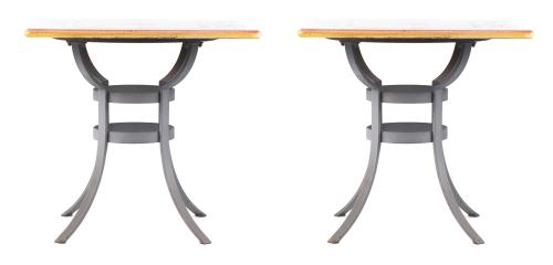 Deux tables de jardin pied en fer et plateau en pierre de lave de Deruta