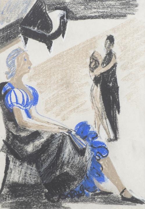 Robert HELSMOORTEL (1922-2007) "Silhouette sur fond bleu"