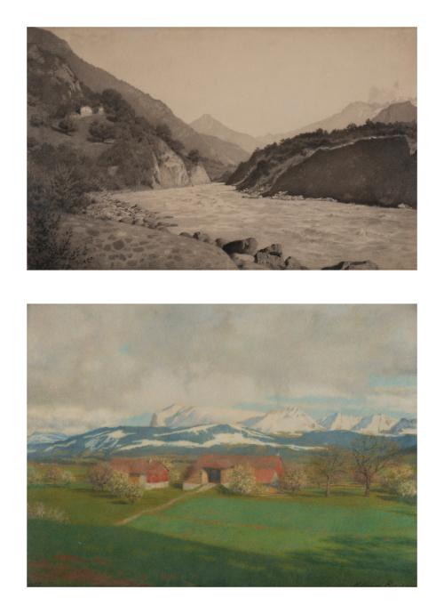 Etienne RIVIER-SOUTTER (1885-1963) "Paysage vaudois" & "Bord du lac de Neuchâtel"
