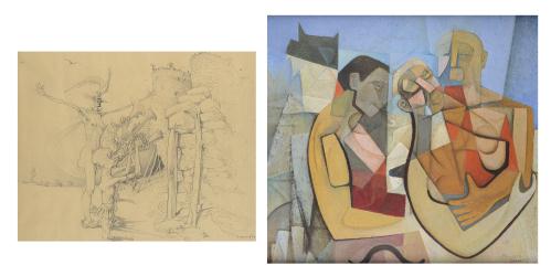 Richard HARTMANN (1901-2000), ensemble de quatre huiles sur toile et cinq dessins, accompagné d'une huile de Nanette Hartmann-Ammann