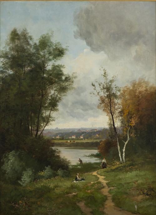 François Louis FRANÇAIS (1814-1897), "Baignade à l'orée du bois", Huile