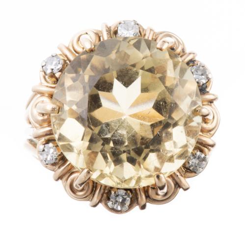 Bague en or rose aux diamants et citrine, circa 1940