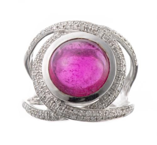 Diana CARMICHAEL, Bague en or gris aux diamants et rubelite