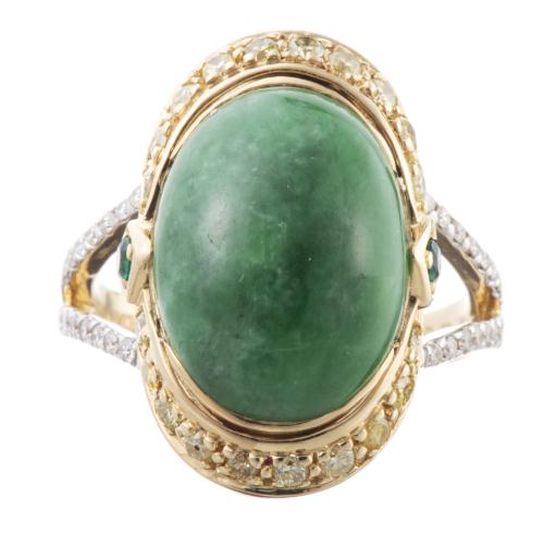 Diana CARMICHAEL, Bague Émeraude de taille poire en or gris et diamants