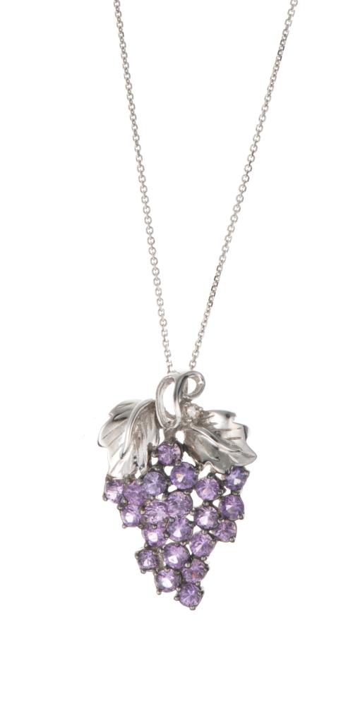 Pendentif en or gris en grappe de raisin aux saphirs et diamants