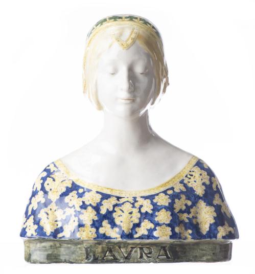 Angelo MINGHETTI (1822-1885), manufacture de, Bologne, buste en faïence émaillée polychrome représentant Laura