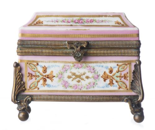 Ensemble de deux boîtes Commode et Guéridon, miniatures en bronze et laiton