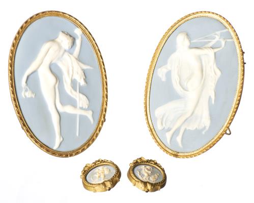 LIMOGES - Camille THARAUD (1878-1956) deux plaques ovales en porcelaine et 2 médaillions
