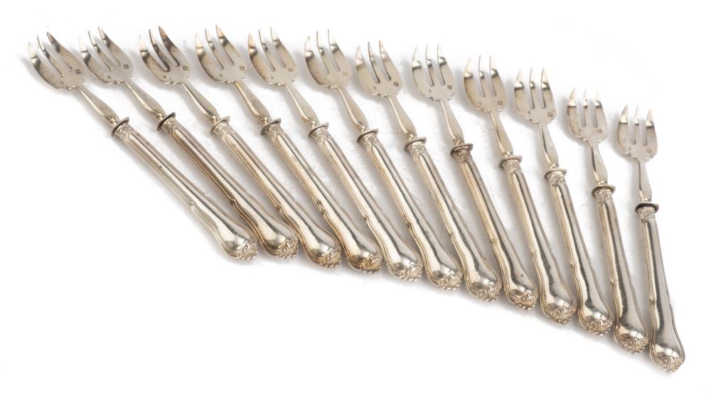 Douze fourchettes à huîtres en argent français 1er titre