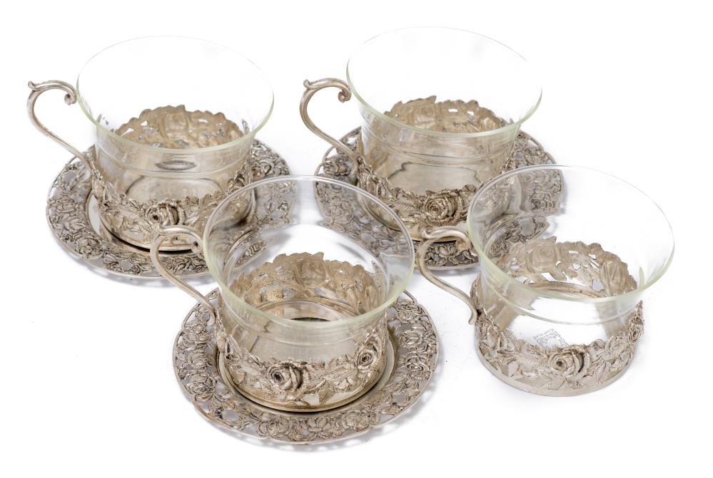 Quatre tasses à thé en verre et argent