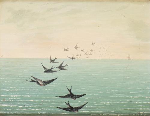 Jovan SOVRENOVIC (Xxe), "Paysage marécageux avec barque", fixé sous verre