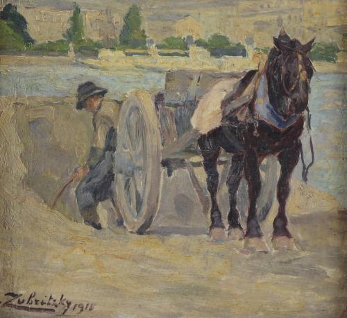 Jovan SOVRENOVIC (XXe), "Paysage de marécage",fixé sous verre & "Les saules" dessin au feutre
