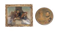 Paire de gravures en tondi dans des encadrements en stuc doré