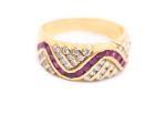 Bague en or jaune .750 avec une ondulation de 19 rubis
