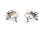 Paire de salières en métal argenté et 2 cuillères à sel