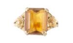 Bague en or jaune .585 avec une citrine de taille émeraude