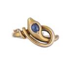 Bague en or jaune en forme de tête de serpent surmontée d'un saphir cabochon