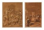 Louis MENNET (1829-1875), "Bateaux", paire d'aquarelles