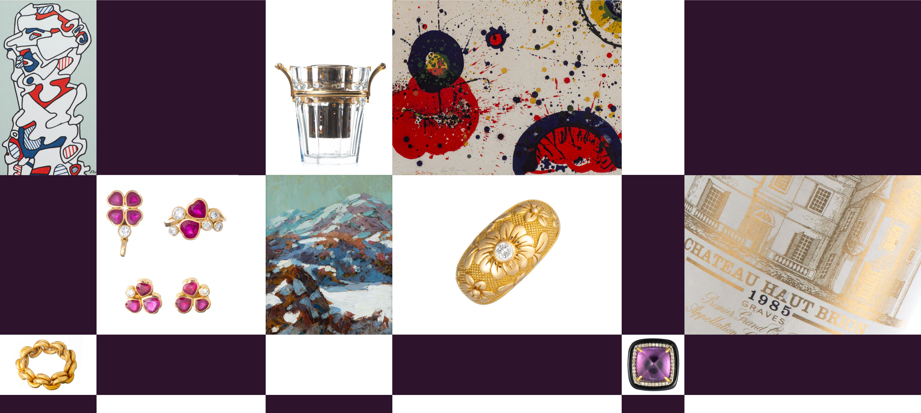 Silver Asian Art Cars Paintings & Sculpture Clocks & Watches Instruments de musique Jewellery Books Furniture & Decoration Prints & Design Ceramics Rugs & Textiles Collectibles Wines & Spirits Vintage