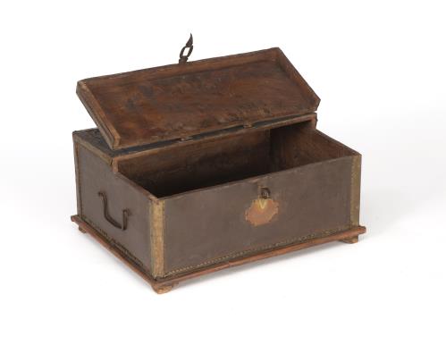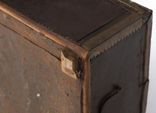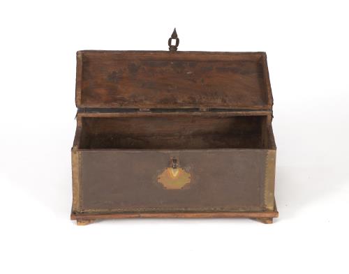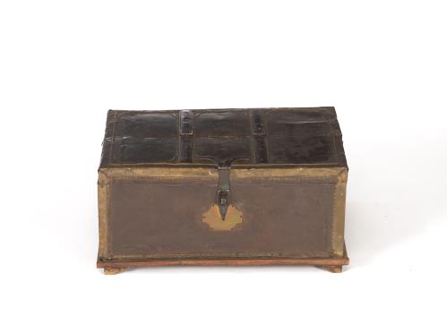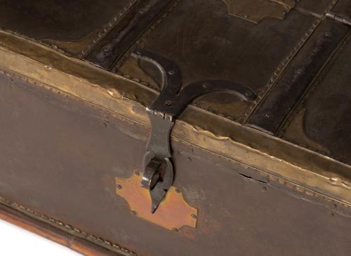 Coffre d'Asie du nord-est (Mandchourie ou Mongolie) en bois recouvert de métal. XXe.