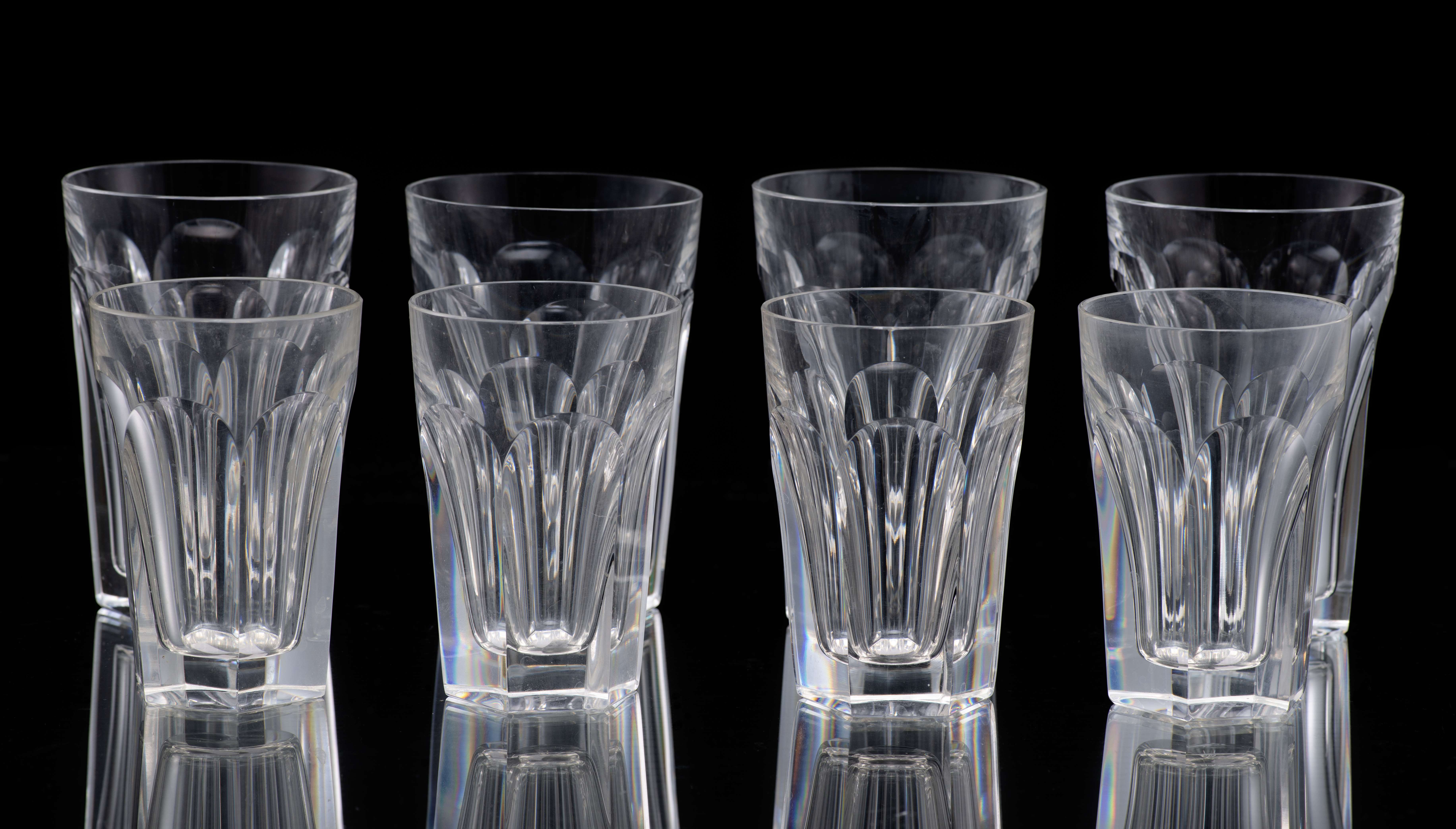 - quatre grands verres à eau et quatre verres à eau moyens en cristal de Baccarat