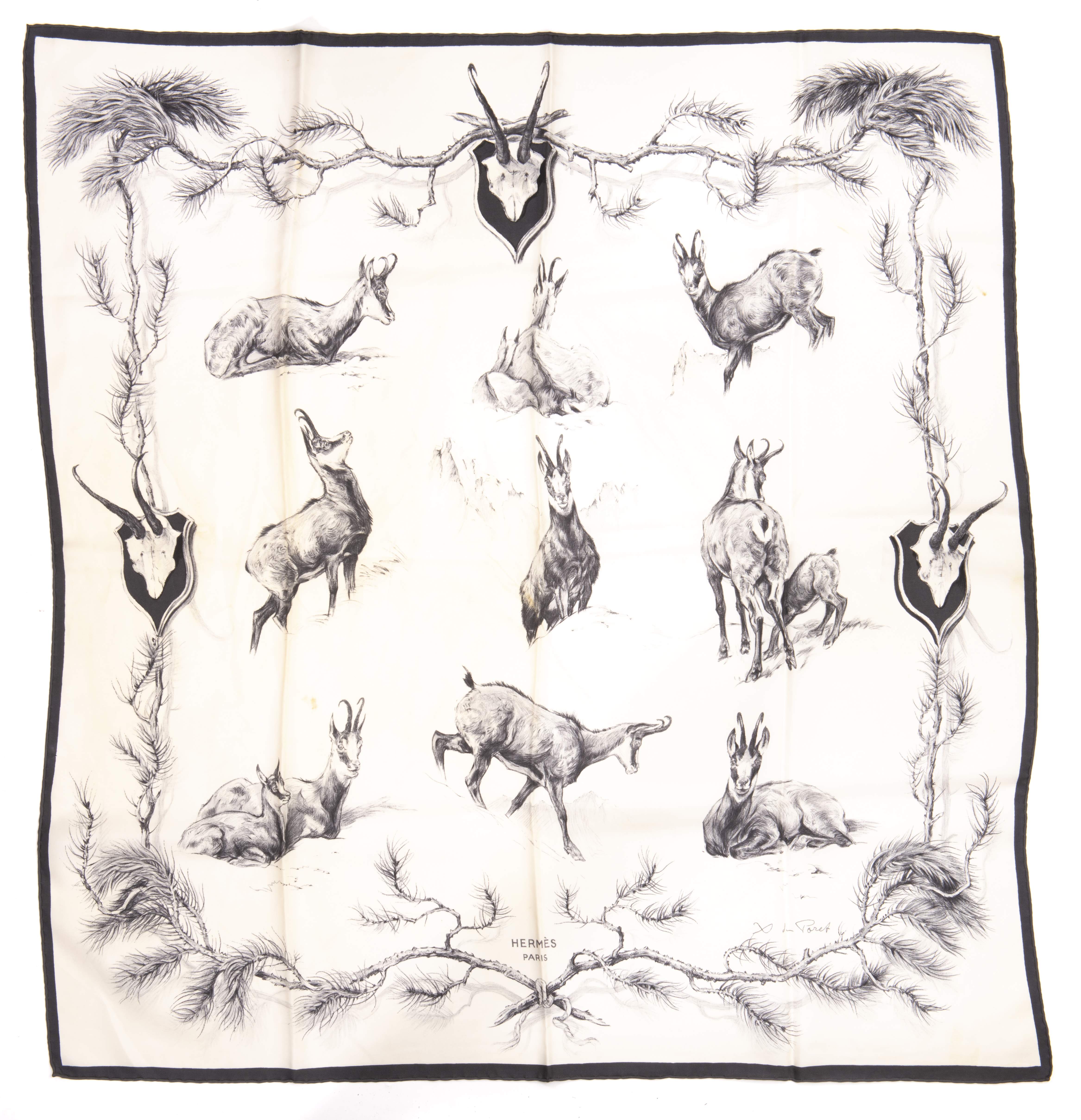 Hermès Paris, carré en twill de soie "Chamois" par Xavier de Poret, première édition datant de 1957.