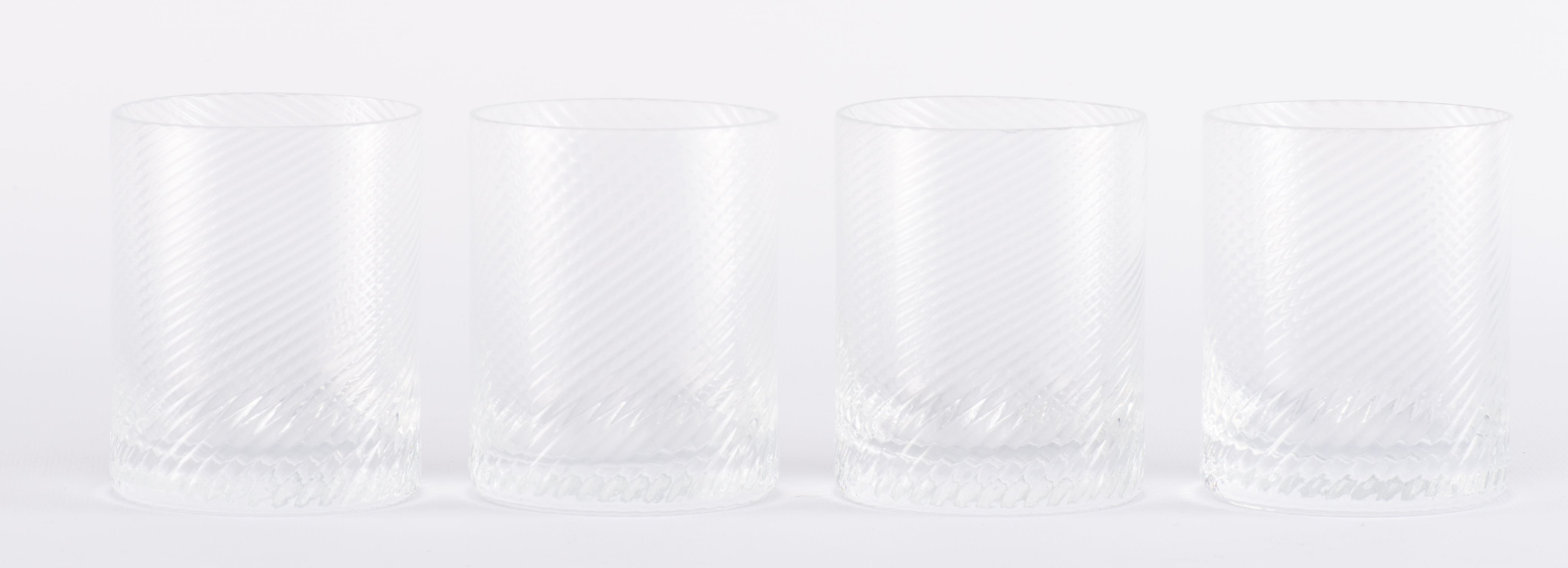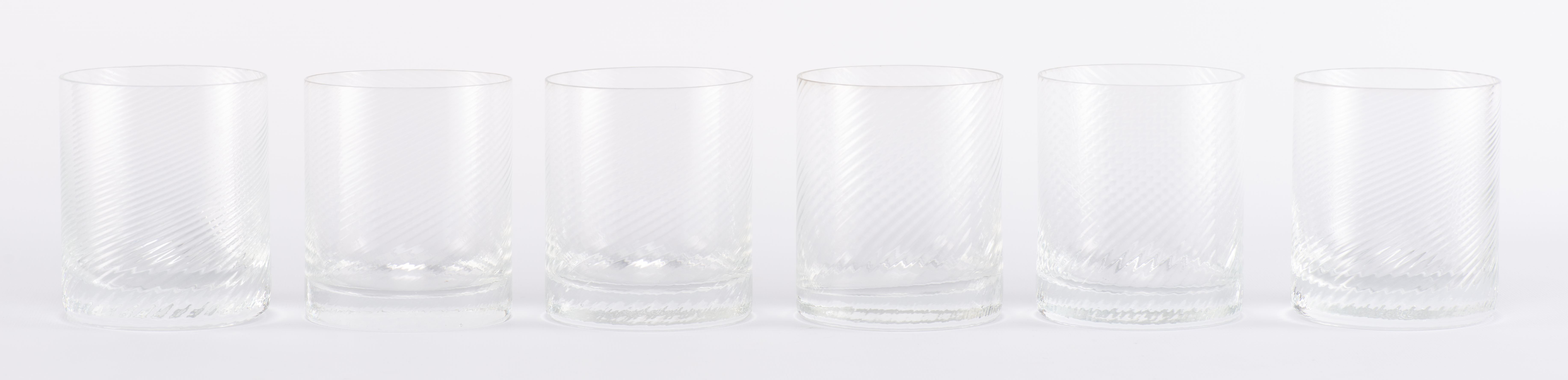 Série de verres en cristal clair sans pied à cannelures en torsades comprenant :