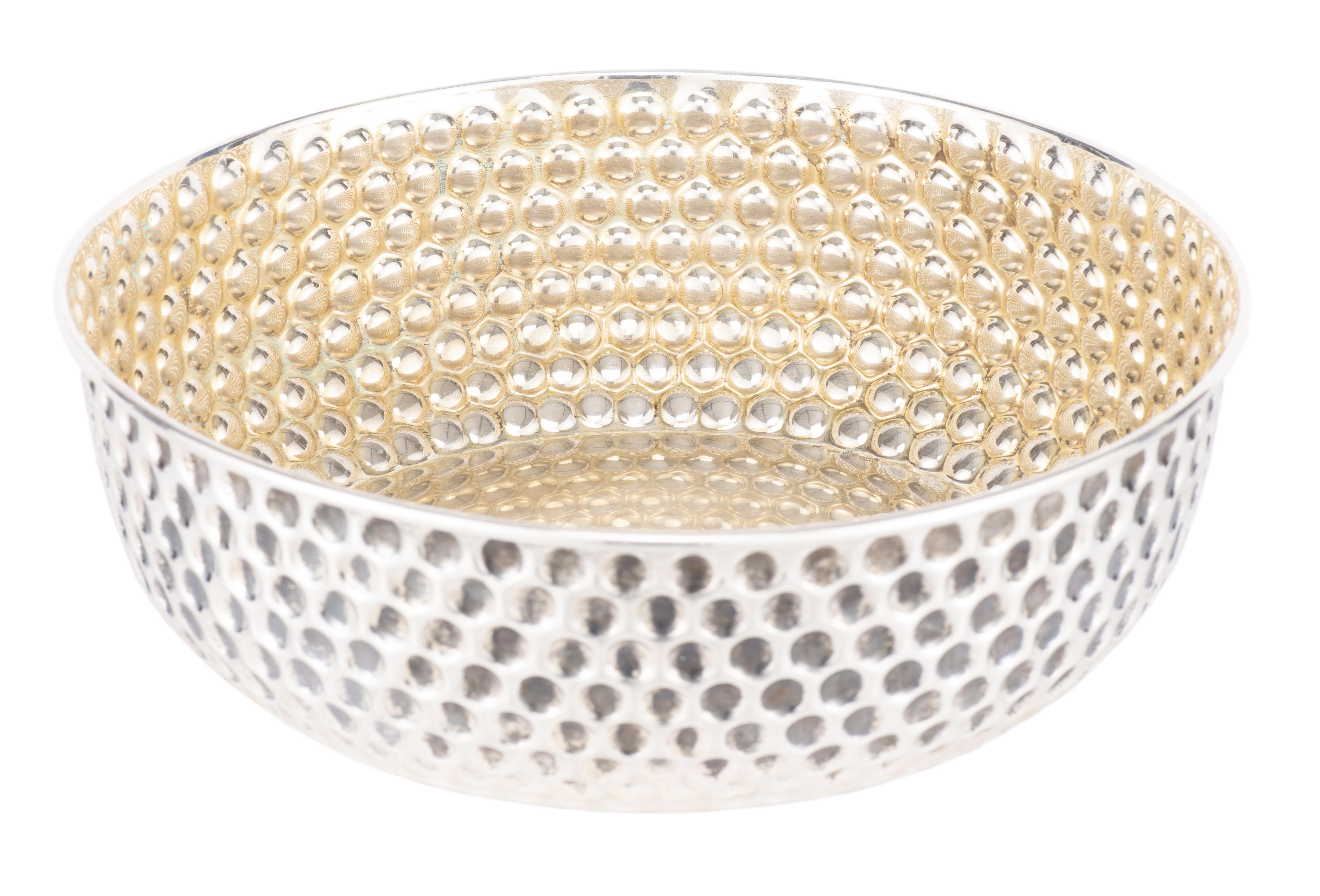 Grand bol en argent .800 vermeil au poinçon *602FI à marli extérieur à décor de boules et intérieur vermeil.