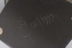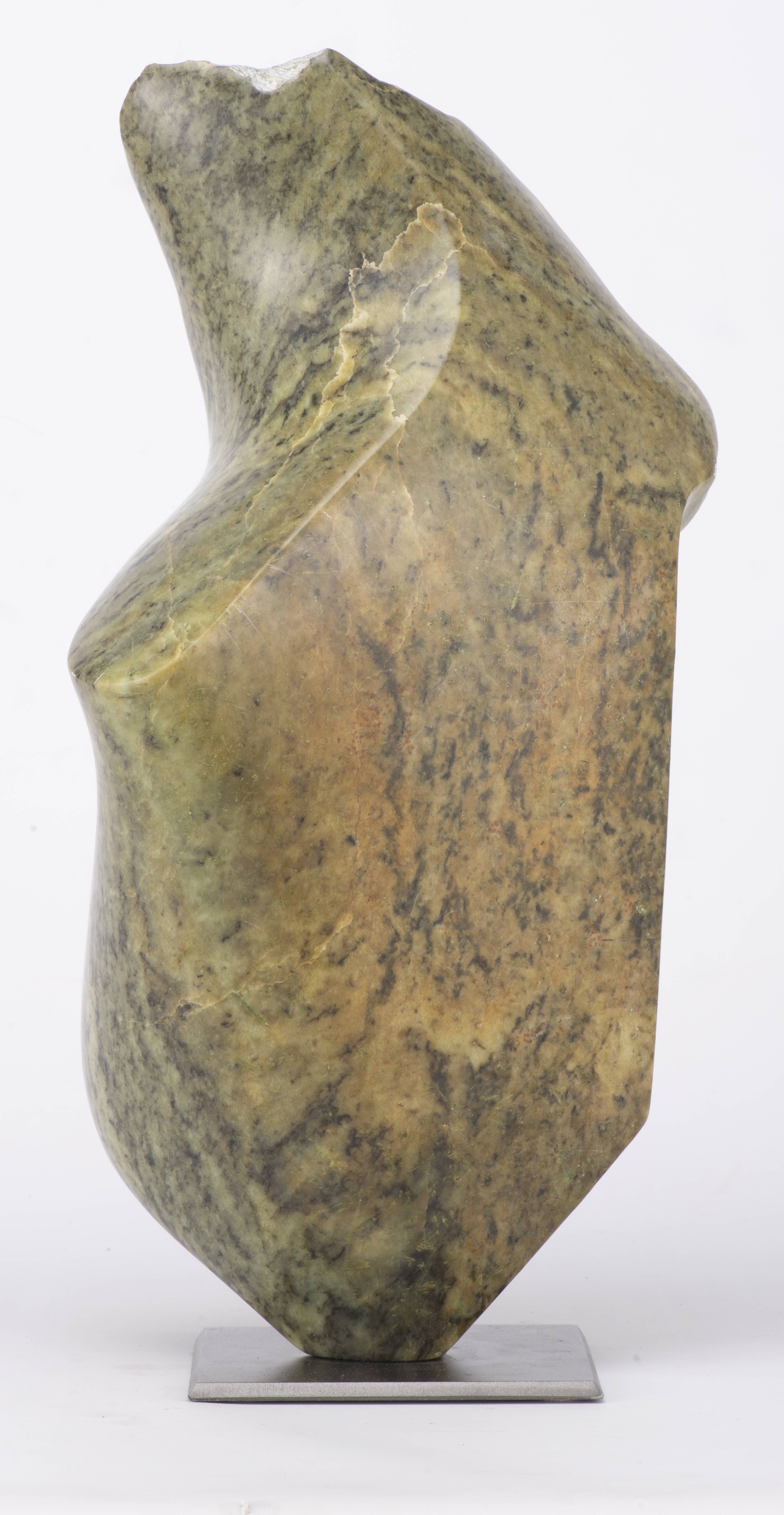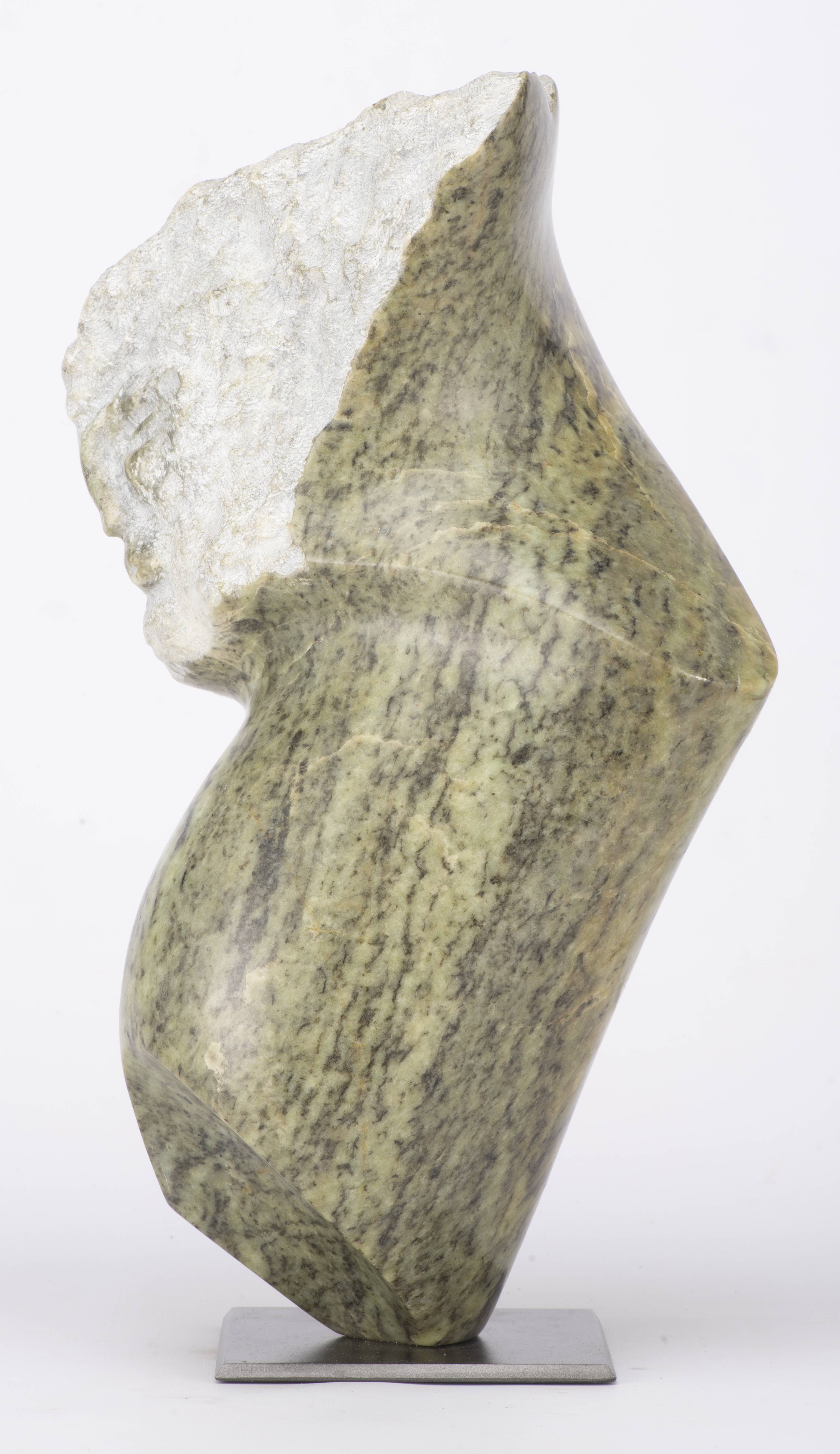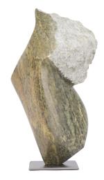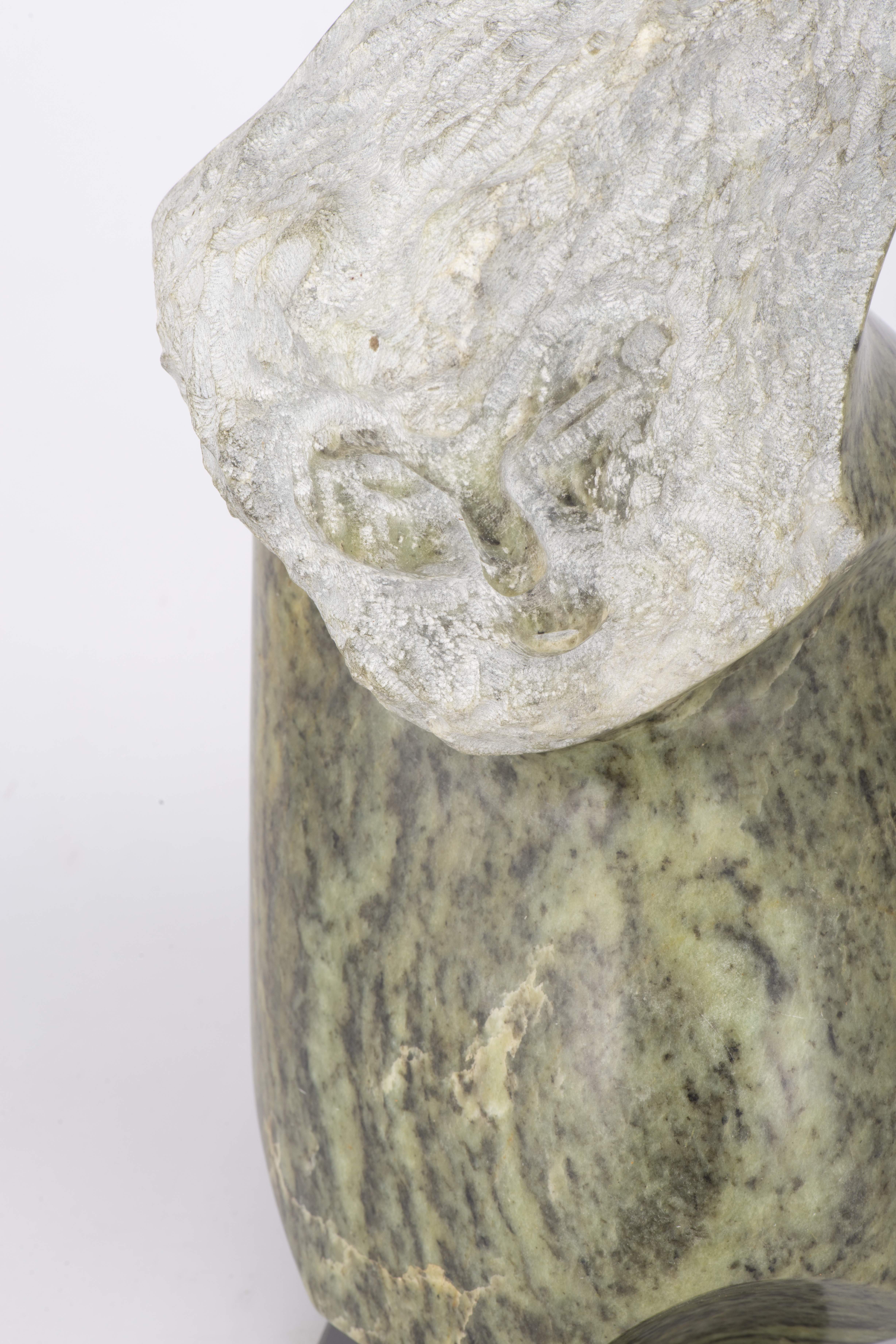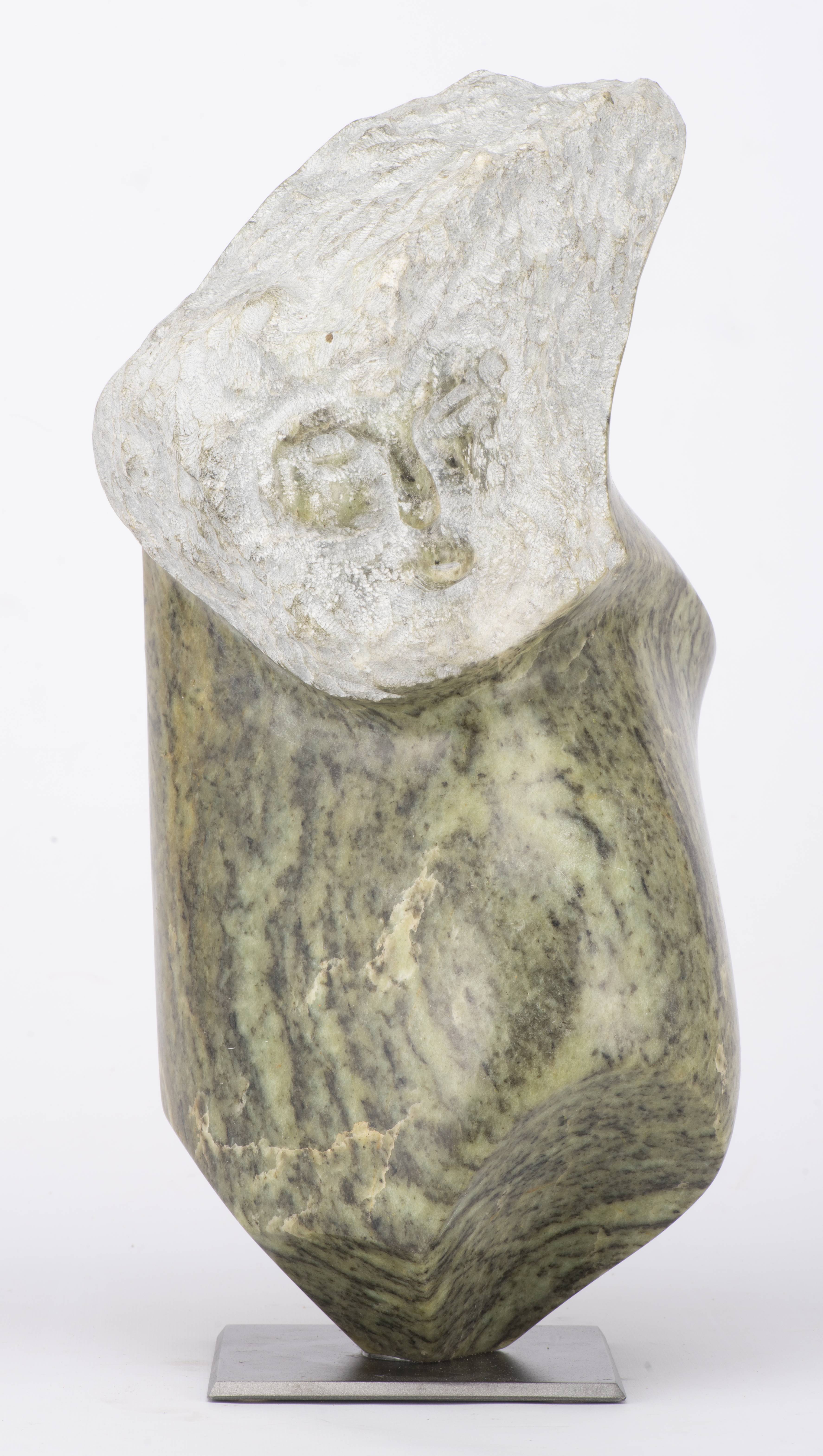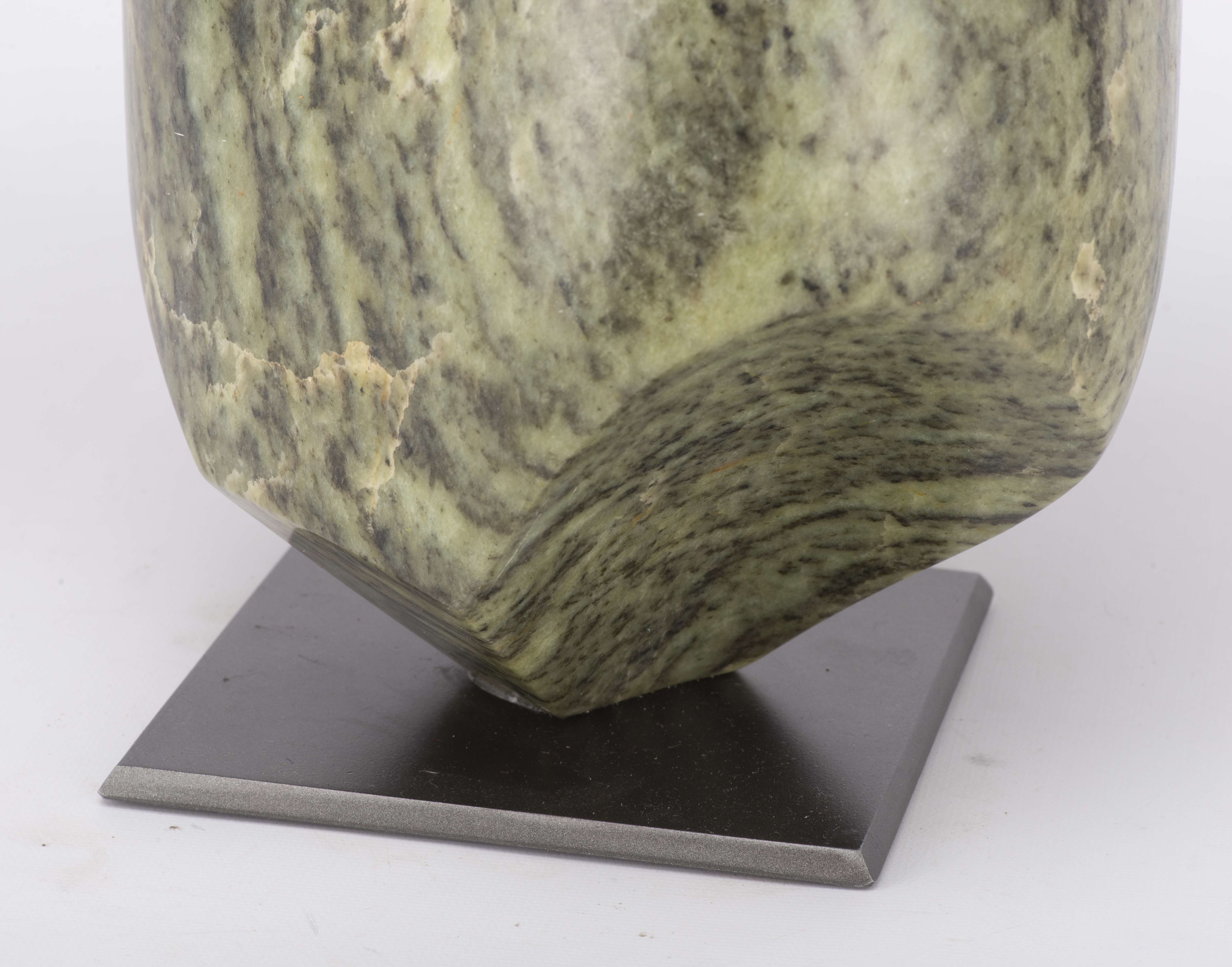 Anonyme EM, buste en néphrite verte XXe, signé sous le socle EM 05/1999.