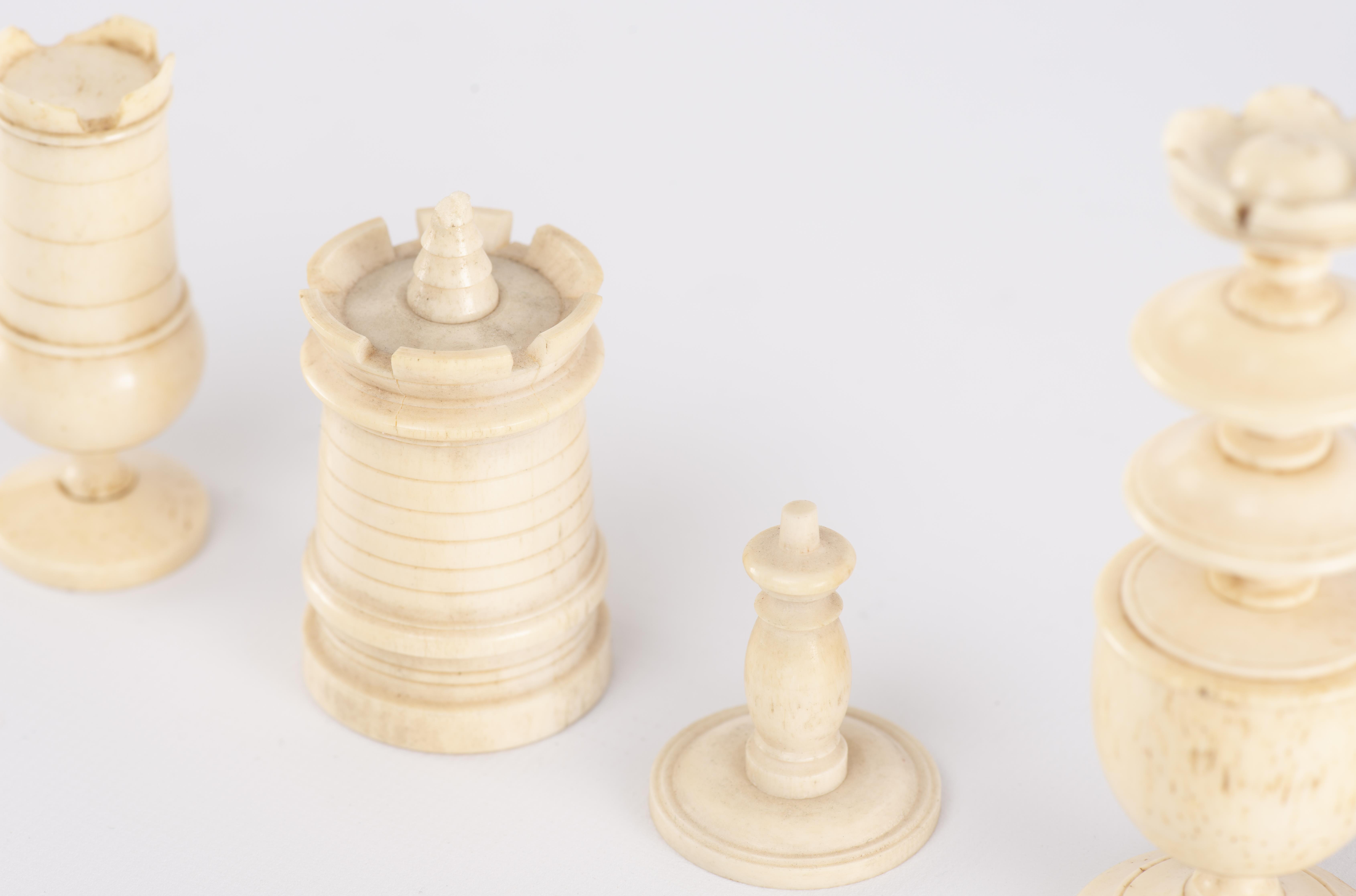 Jeu d'échec anglais en os et ivoire