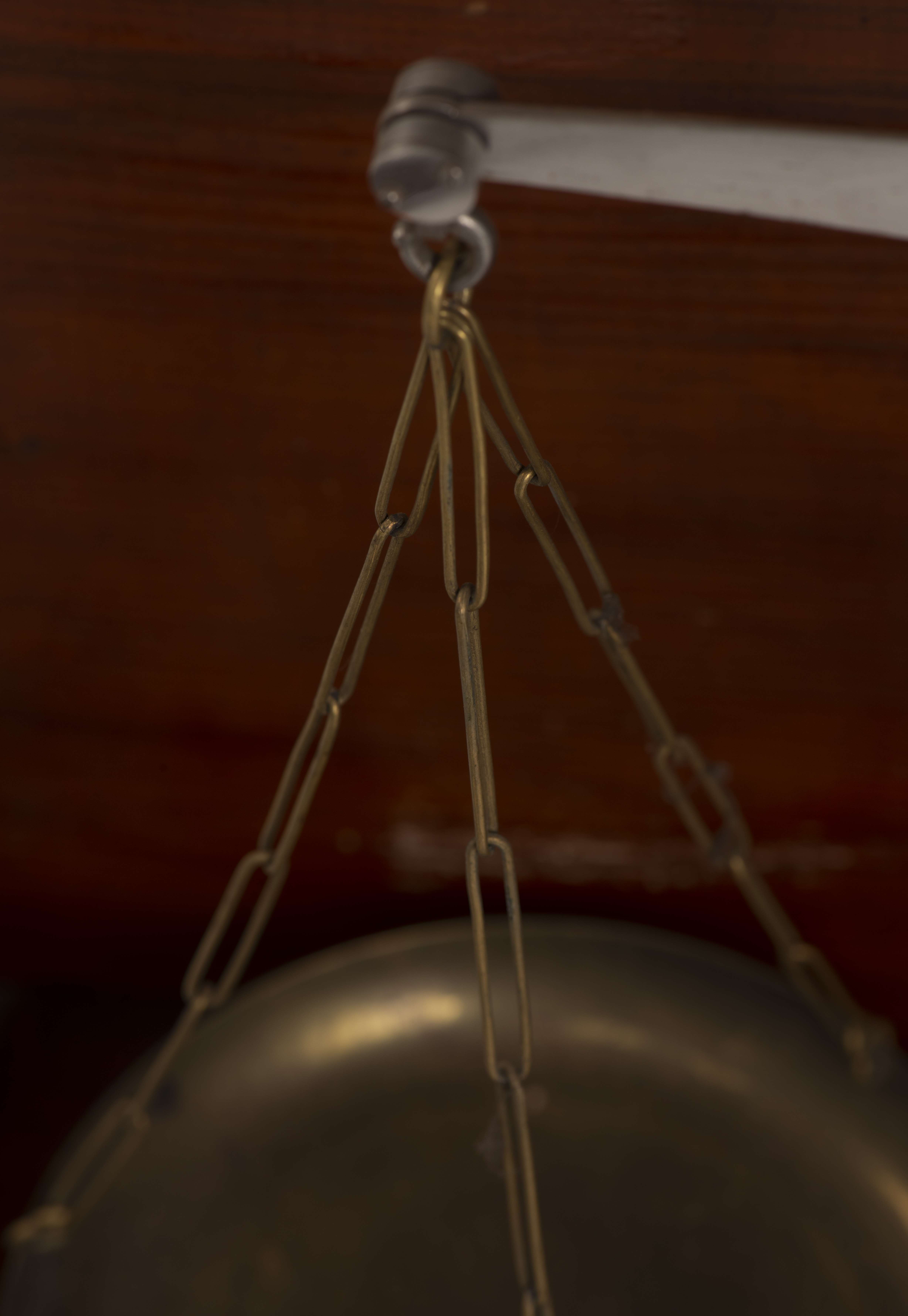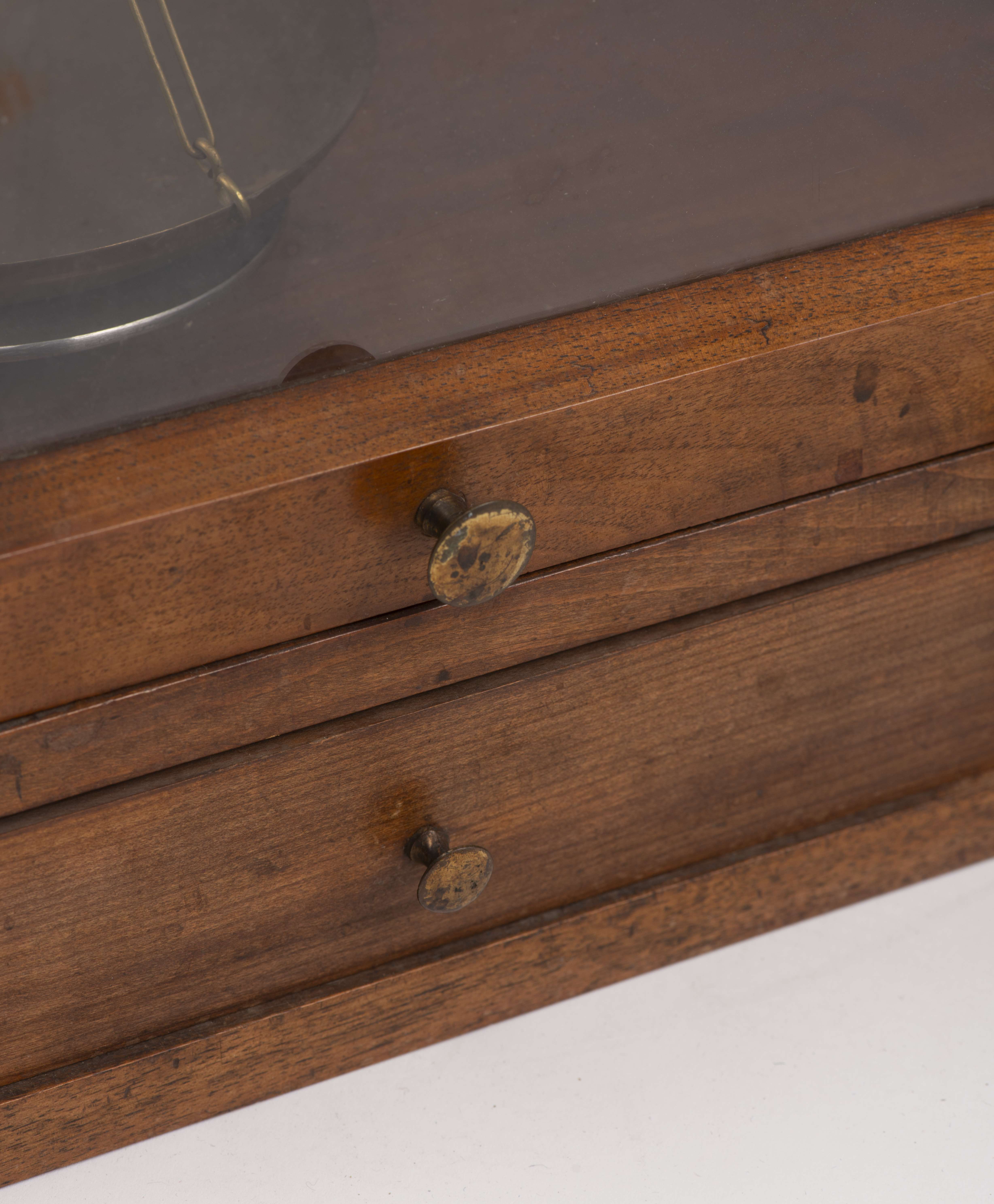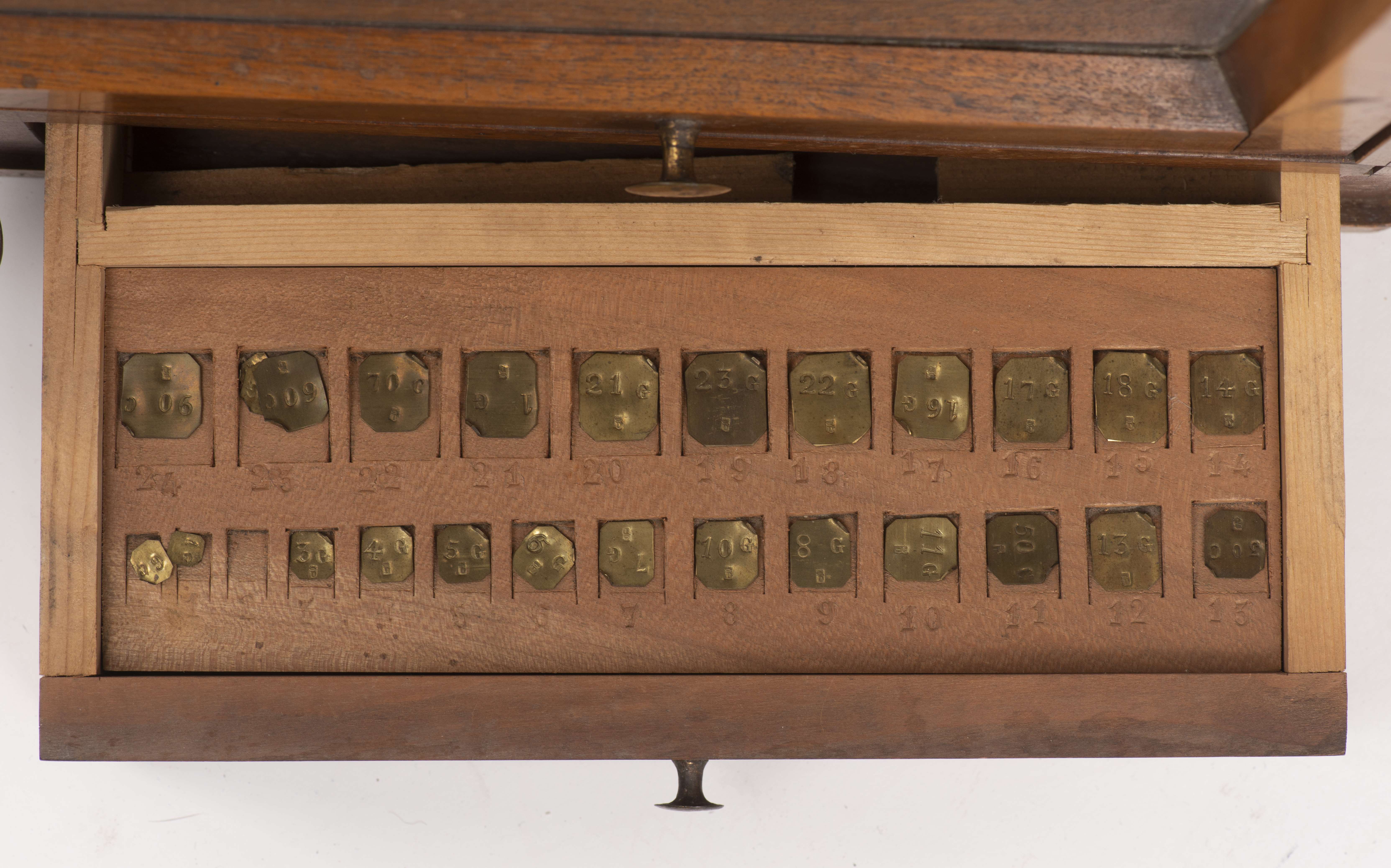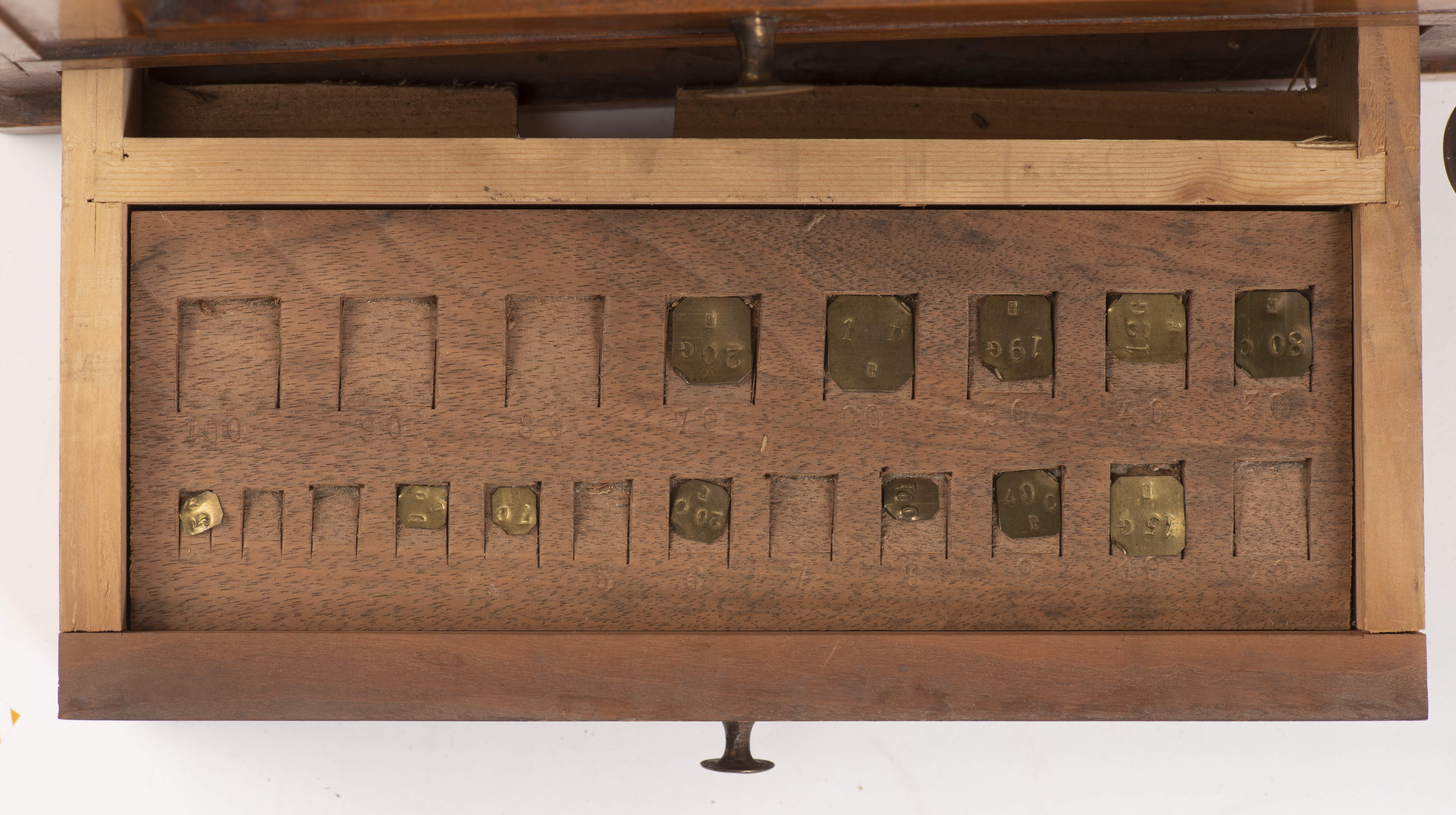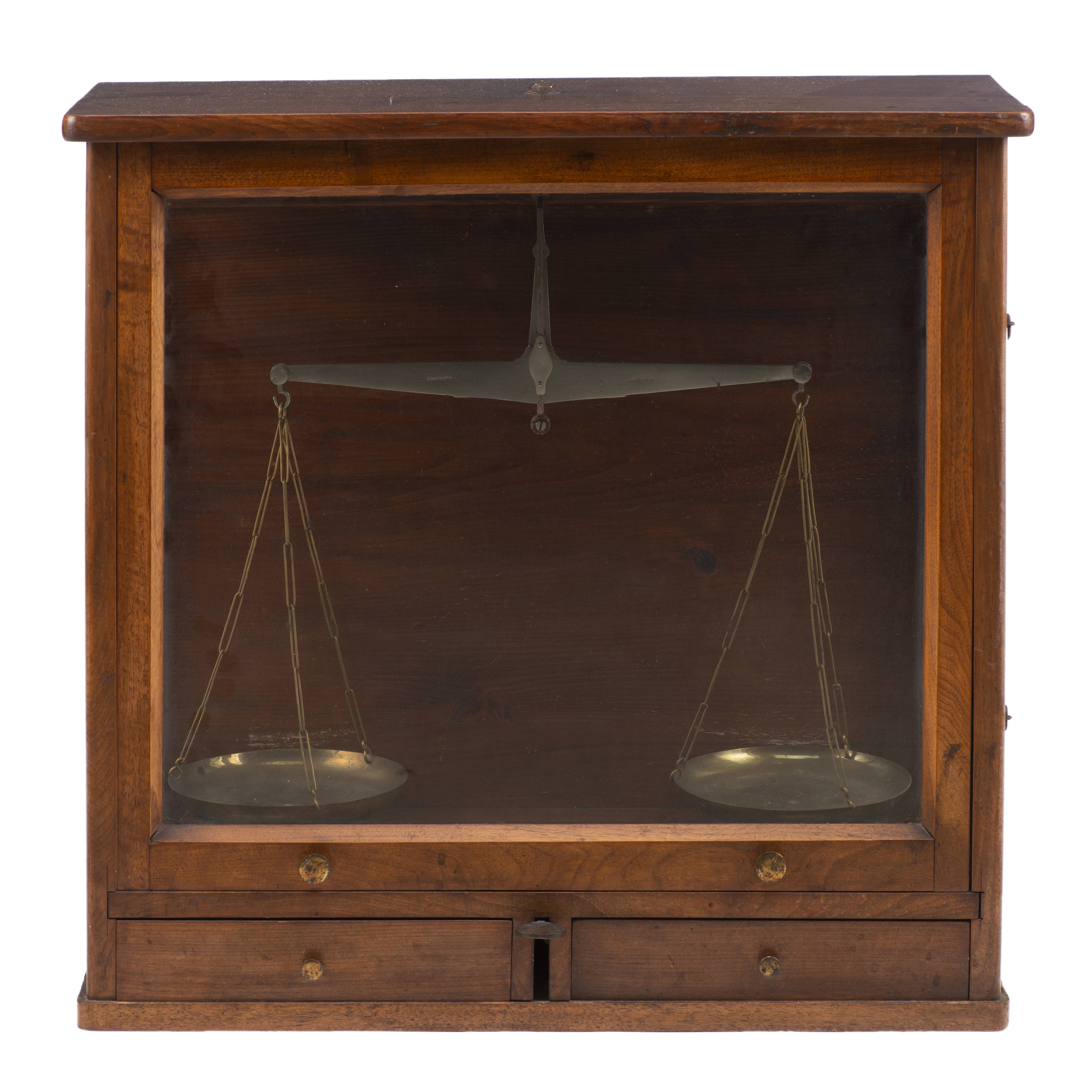 Balance de bijoutier par Z Deschamps à Genève dans son cabinet vitré,