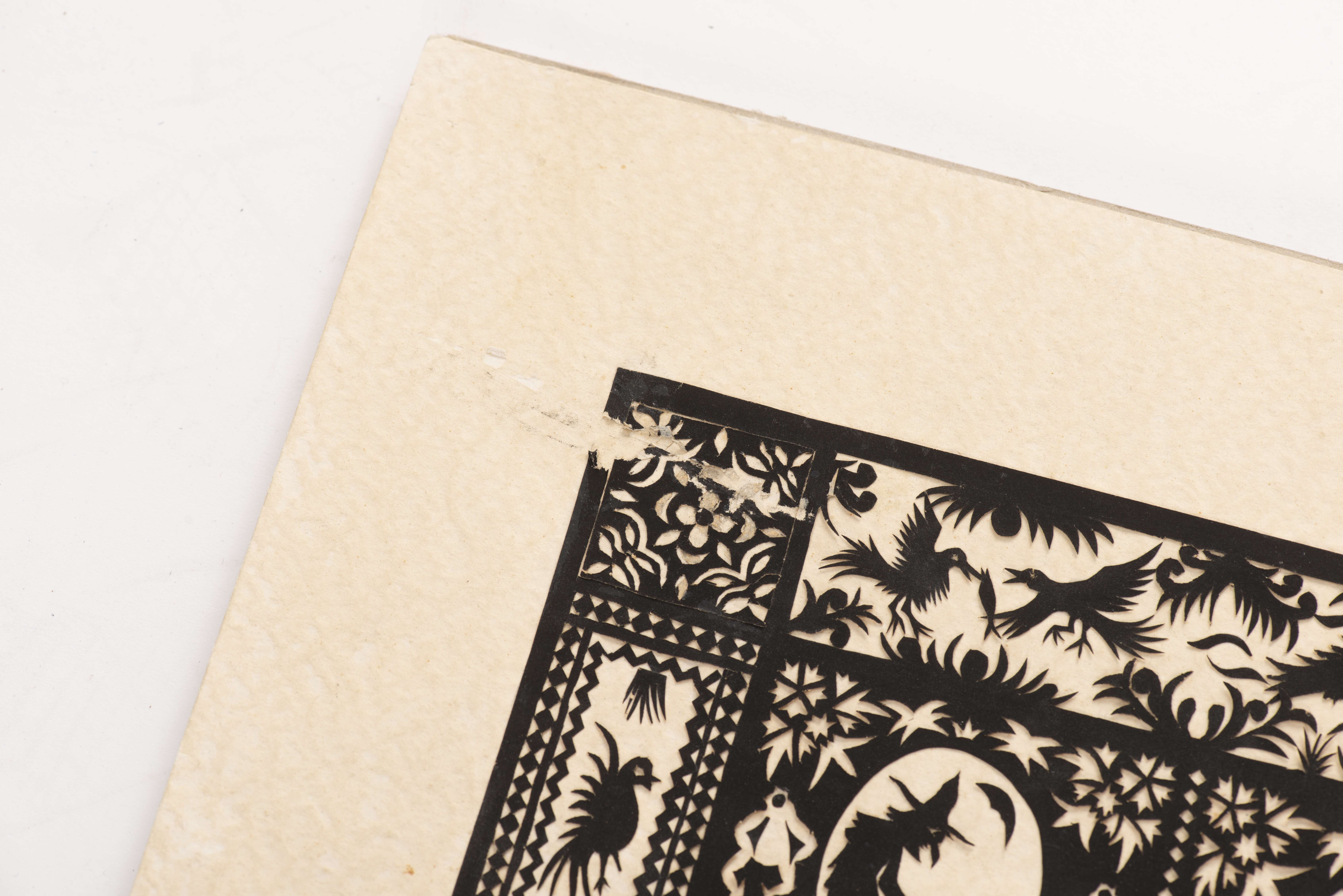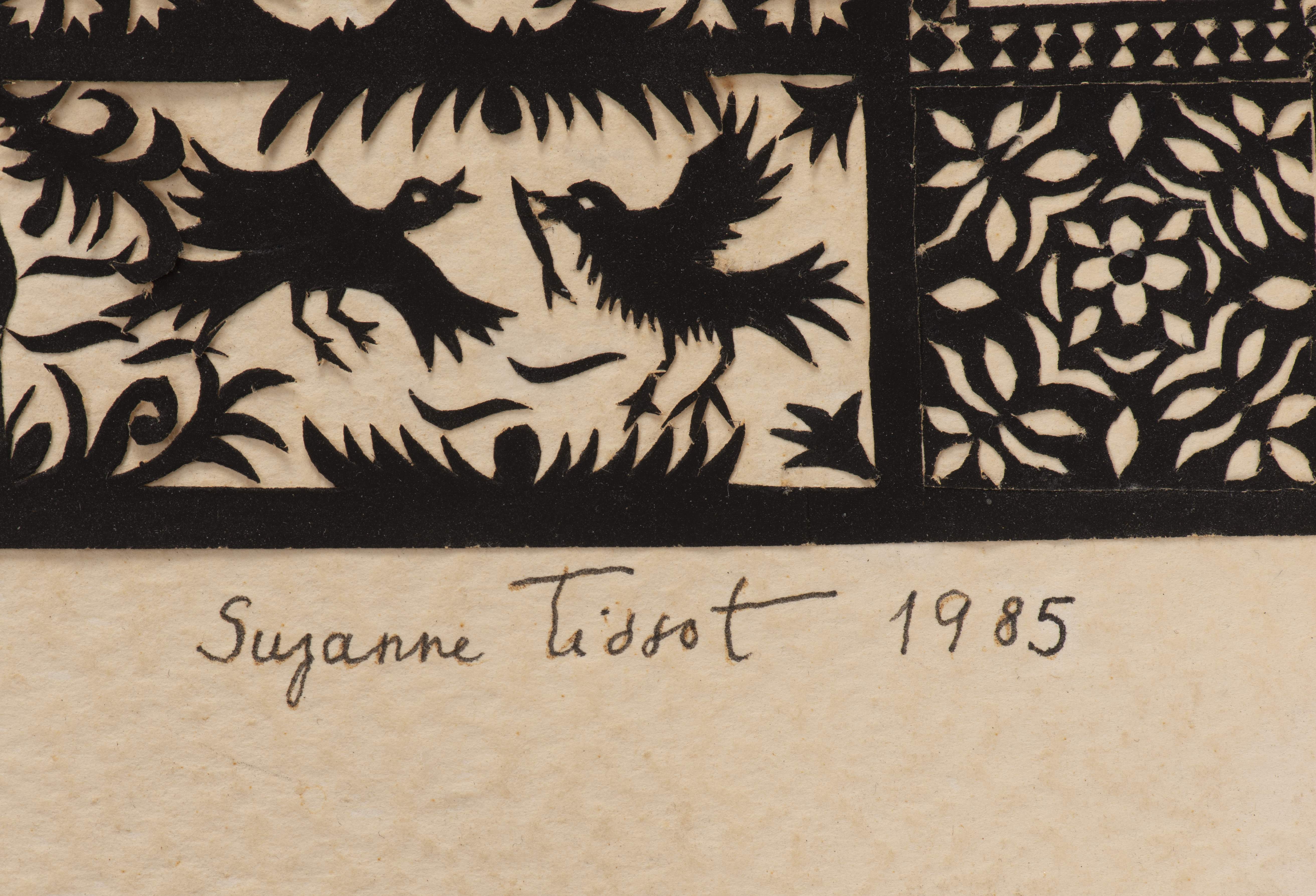Découpage de papier noir sbd au crayon et daté 1985