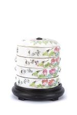 Chine, fin des Qing, ensemble de quatres boîtes empilables. Famille rose