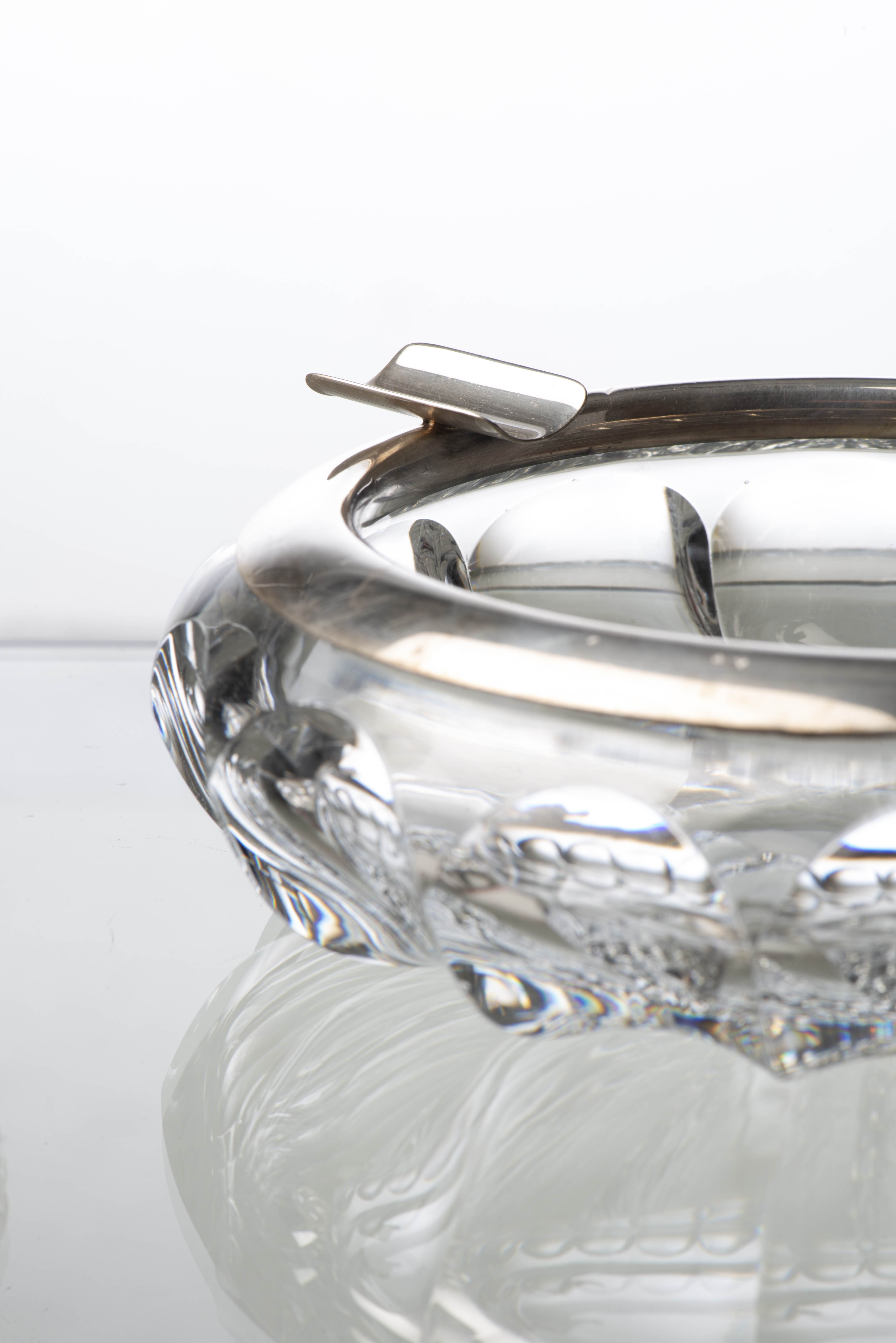 Paire de cendriers en cristal facetté et cerclage en argent .800.