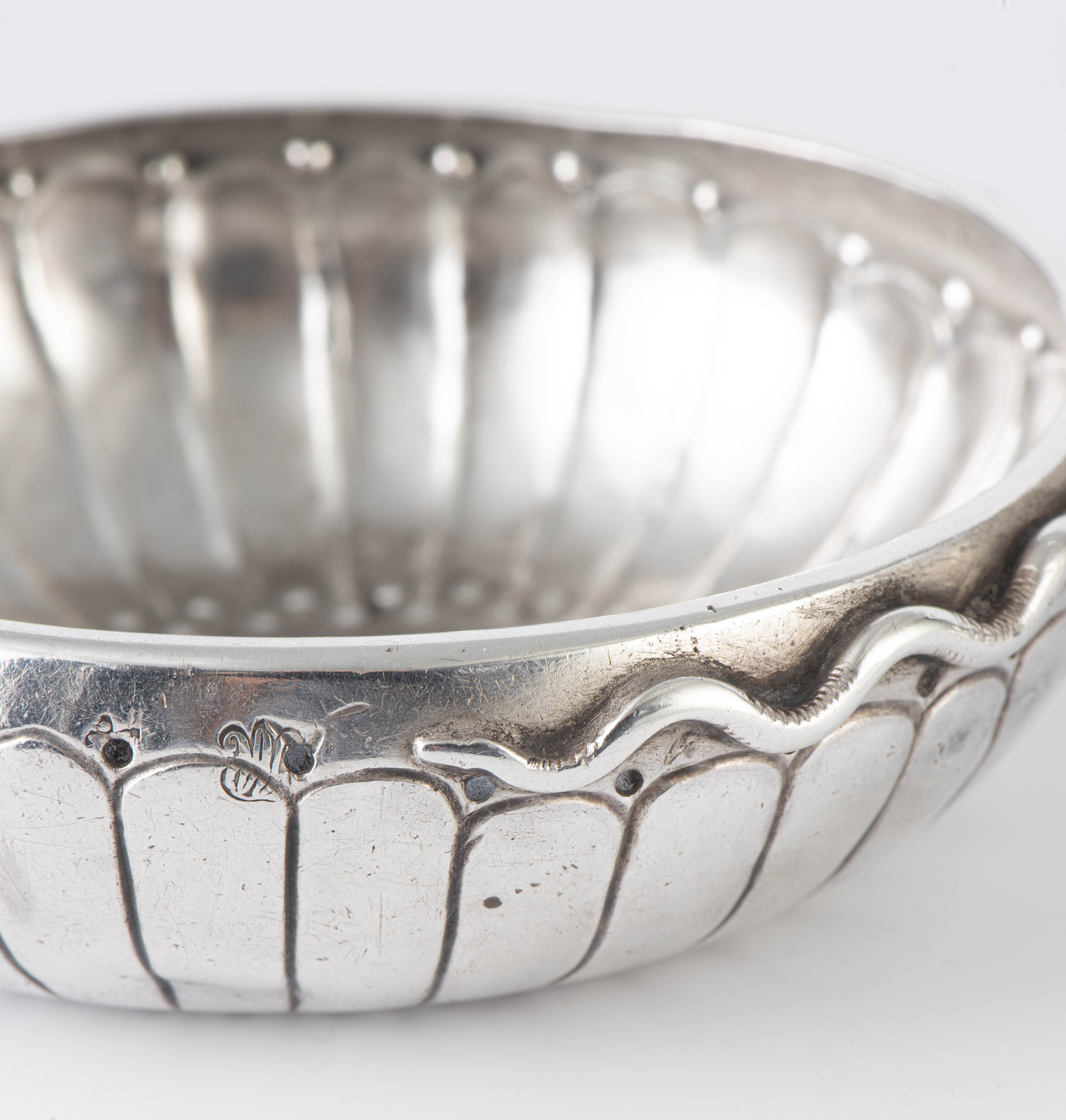 Deux tastevins en argent français du 1er titre fin XVIII - début XIXe à anses serpent.