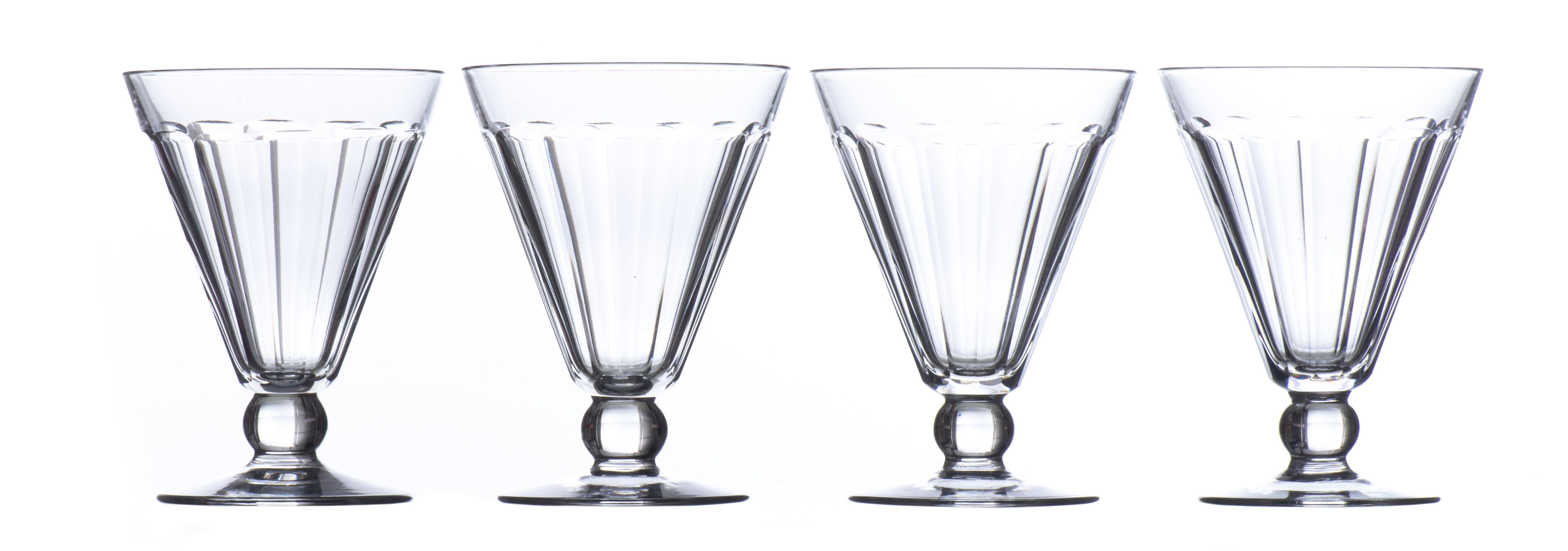 Huit verres coniques en cristal taillé, pied à boule.
