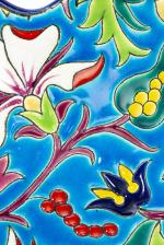 Plat creux en porcelaine de Longwy à décor de fleurs en imitation cloisonné, num. F3475/ D.652.CW lèvre de forme polylobée et 2 anses aux extrémités.