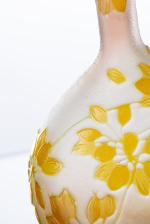 Émile GALLÉ (1846-1904), Vase Solilflore en verre double givré blanc rosé à décor gravé à l’acide d’ombelles jaunes.
